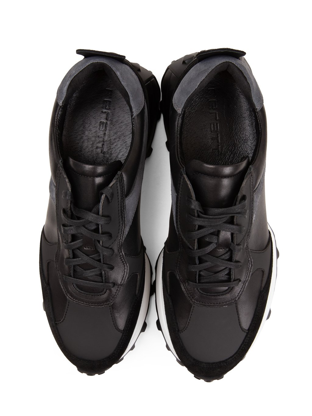 Pánské tenisky AIDEN, které jsou ušité v černé barvě. Luxusní tenisky vyrobené z prémiové kůže, které se perfektně hodí k našim džínám.
