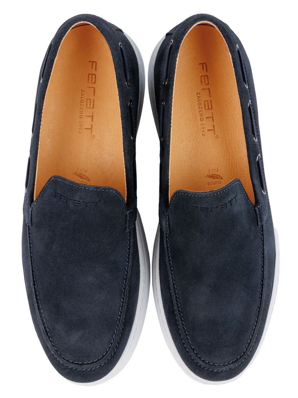 Pánské semišové mokasíny DEAN v tmavě modré barvě. Pohodlné mokasíny vyrobené z prémiové kůže.