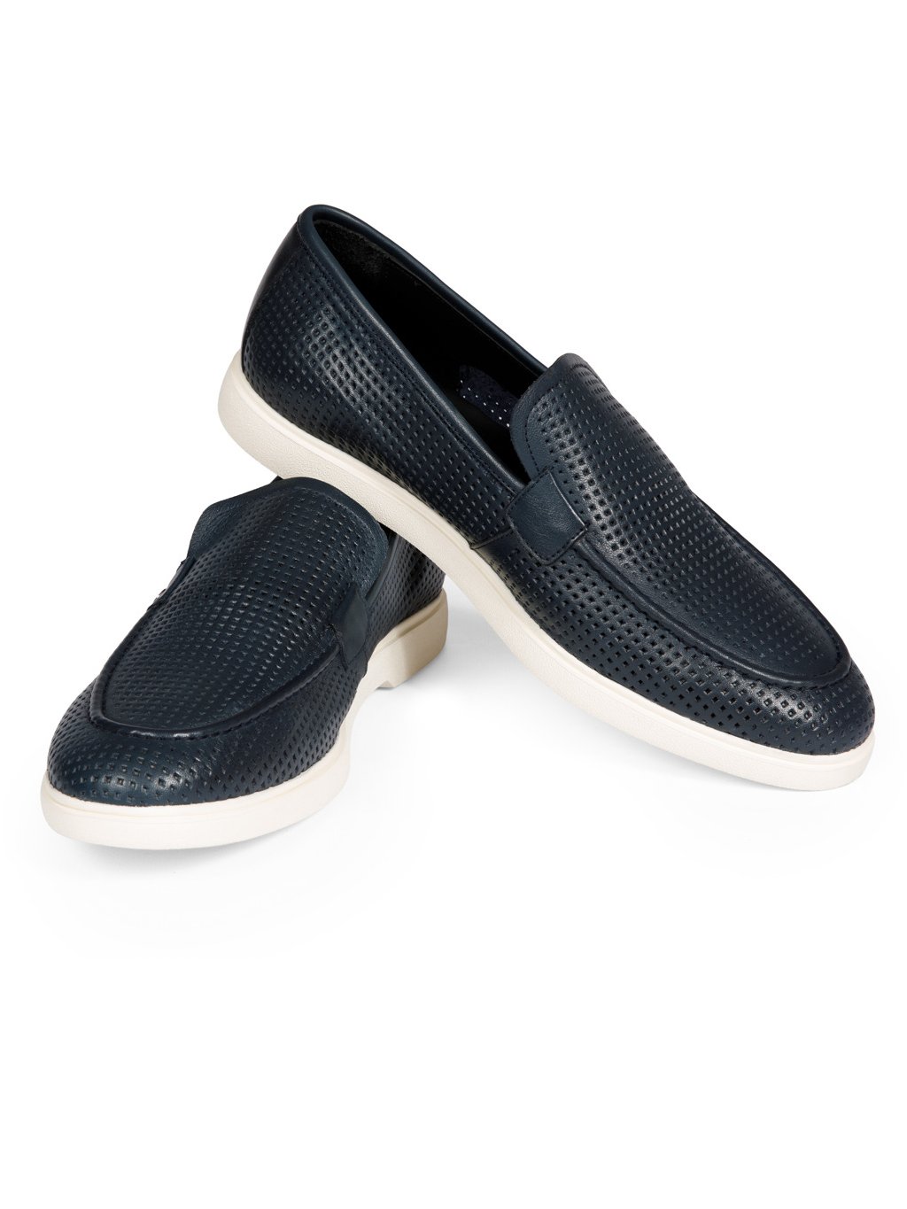 - Tmavě modrý svršek v kombinaci s bílou podrážkou skvěle ladí s džínami, chinos kalhotami i sakem – ideální pro ležérní i semi-formální outfit.
