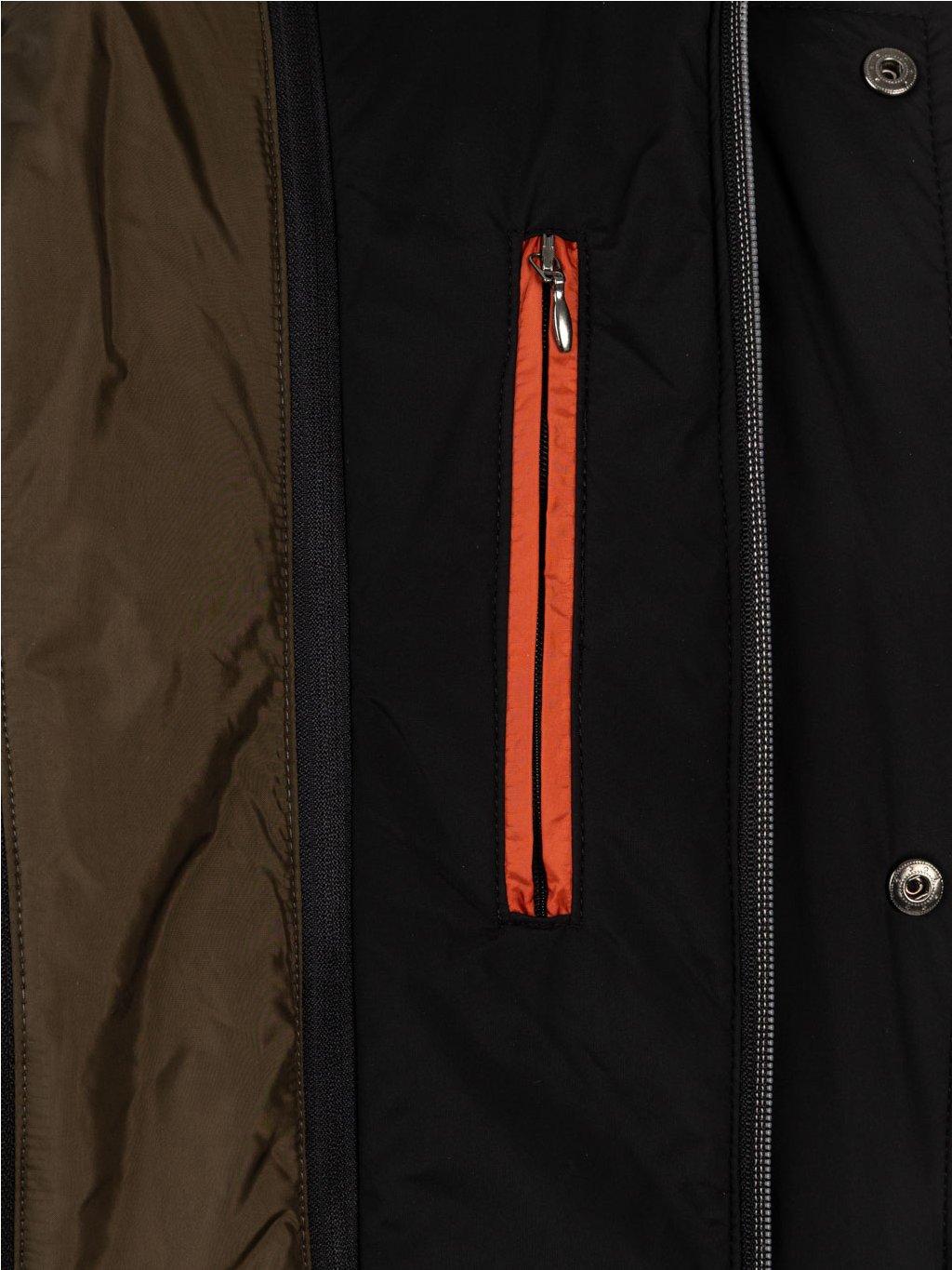 - Dvě vnitřní kapsy se zapínáním na zip - jedna náprsní kapsa v pravé části a jedna šikmá kapsa v levé přední části.