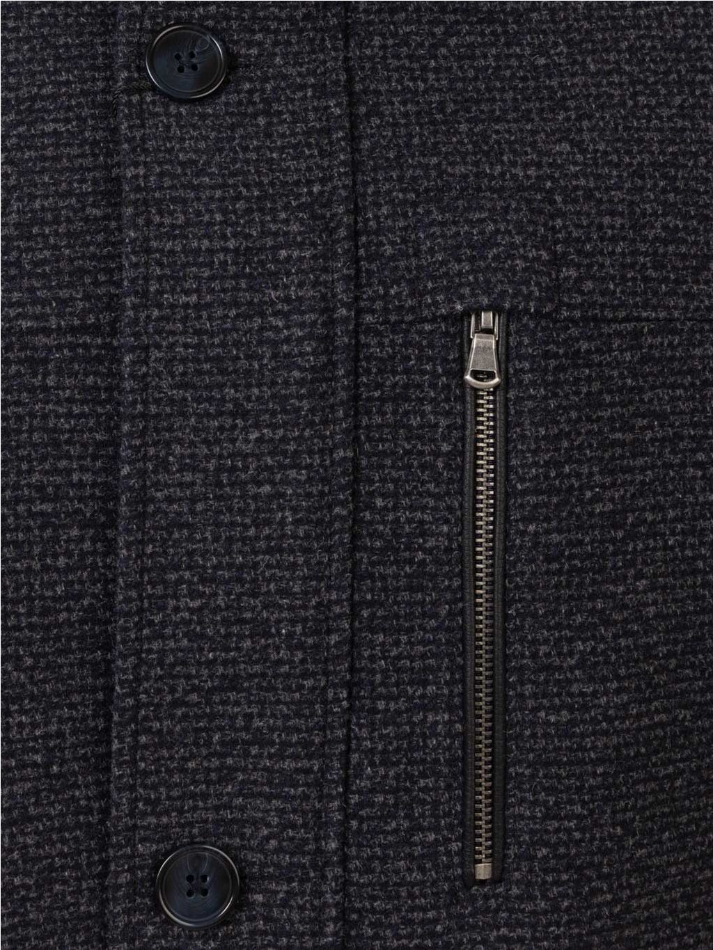 - Kabát je vybaven dvěma šikmými kapsami s lištou a vrchní šikmou kapsou na zip.