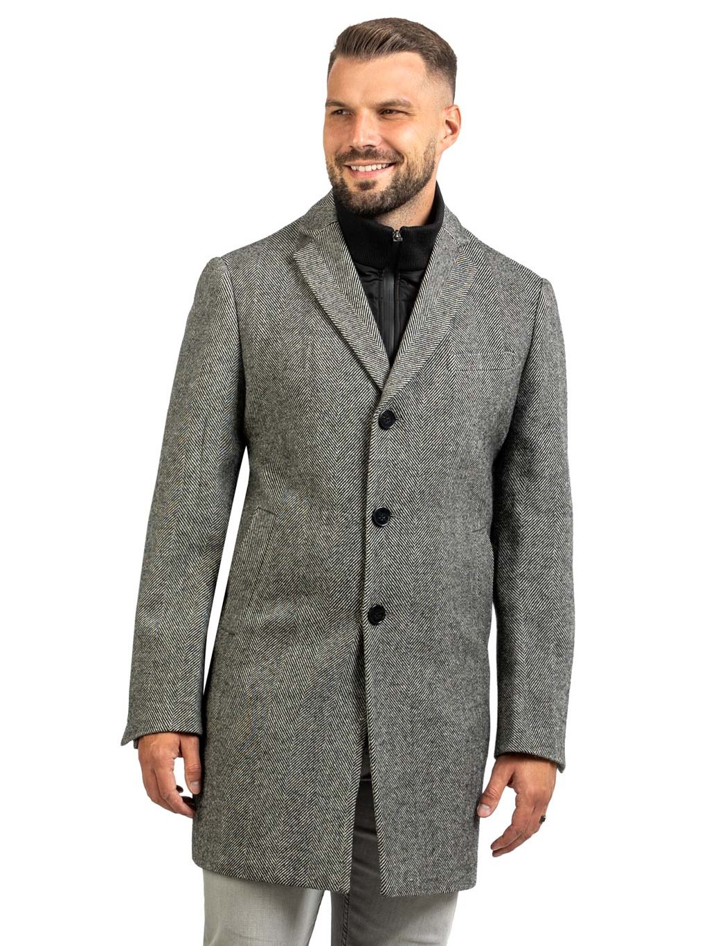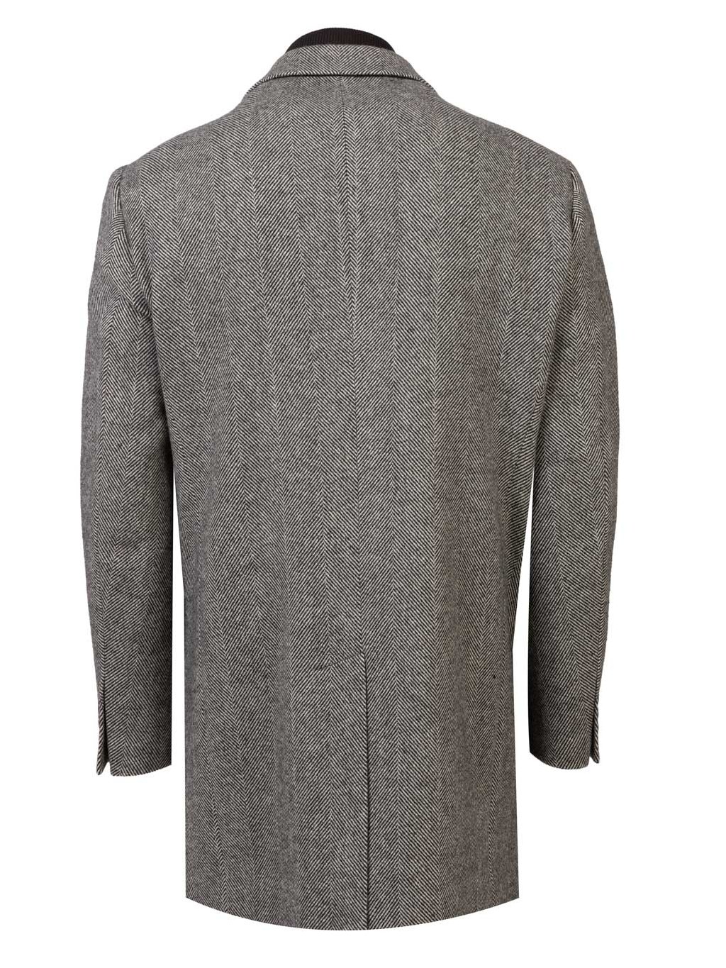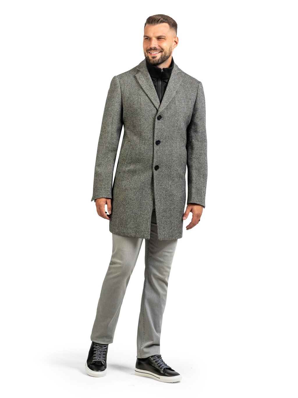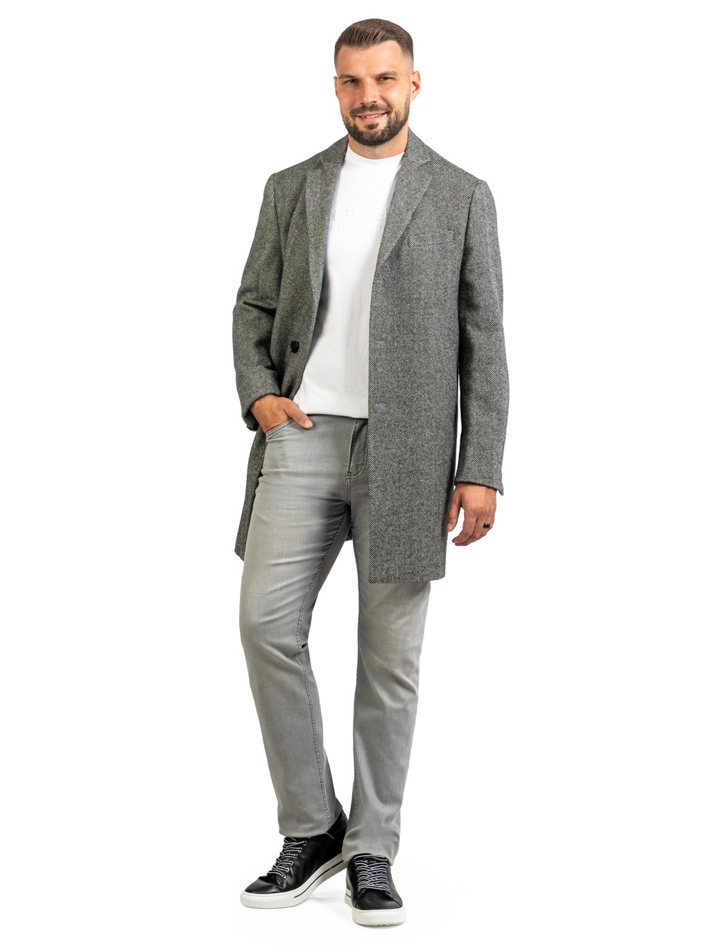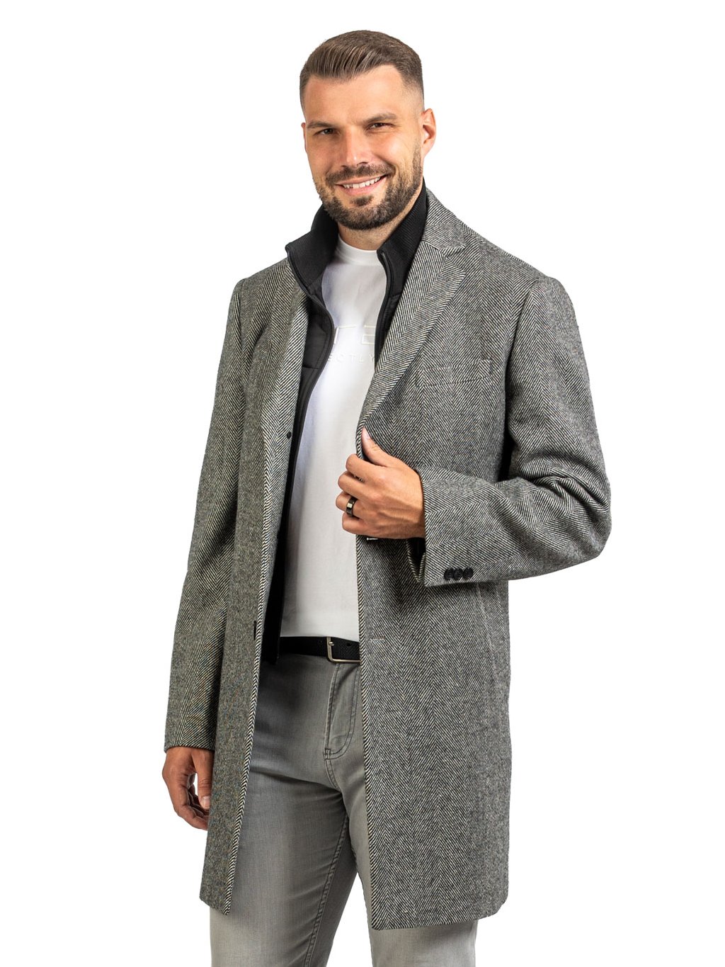 Pánský zimní kabát RONALD ušitý v šedé barvě se vzorem. Kvalitní vlněný kabát do zimy.