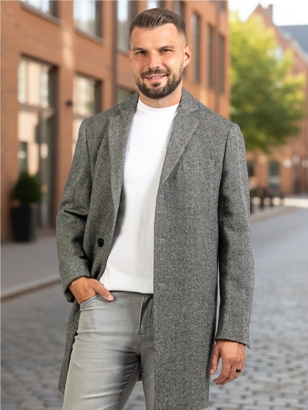 Vylaďte svůj zimní šatník s pánským kabátem RONALD v šedé barvě s výrazným vzorem.