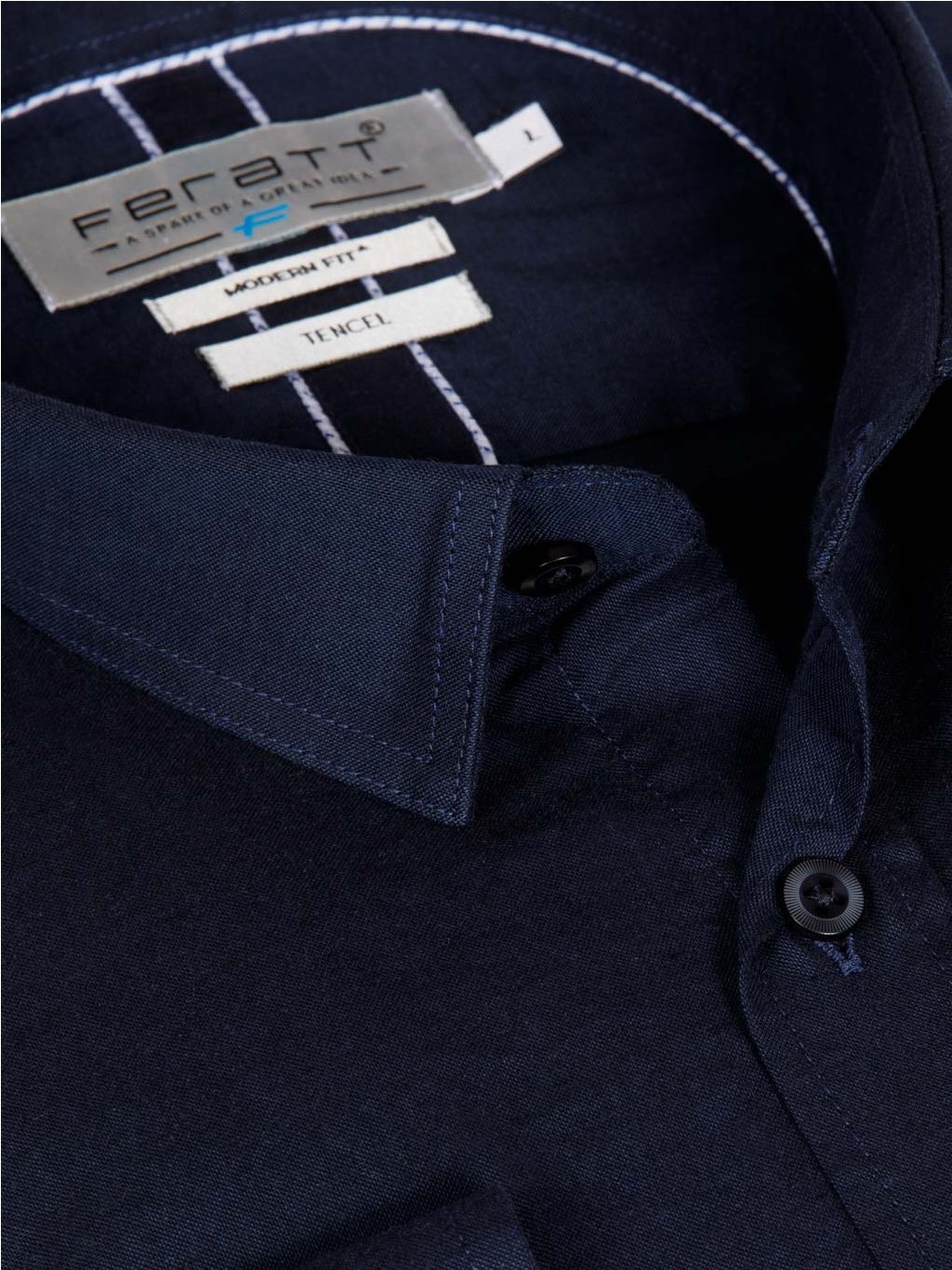 Pánská formální košile ANDRIK v tmavě modré barvě. Ideální volba pro společenské i pracovní příležitosti. Střih modern fit.