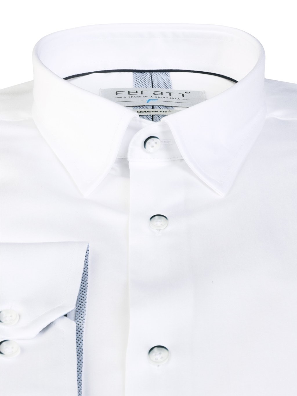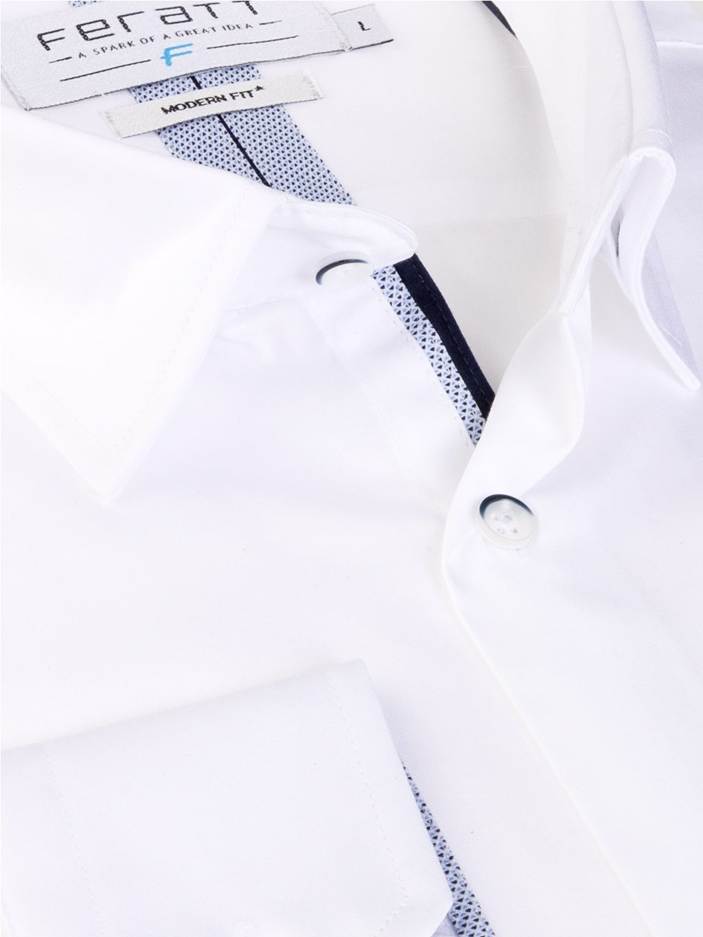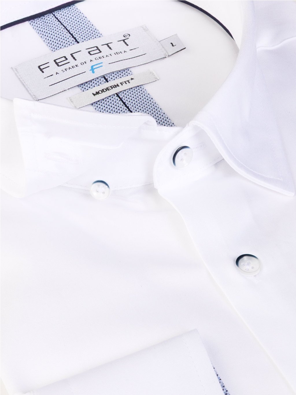 Pánská bílá košile CONOR MODERN fit je to nejlepší z nejlepšího. Pokud hledáte klasickou bílou košili, ale ozvláštněnou nevšedními detaily, z košile Conor budete nadšení. Černě vystínované knoflíčky a kontrastní akcenty na manžetách dávají vědět, že se jedná o košili, se kterou si někdo opravdu vyhrál.