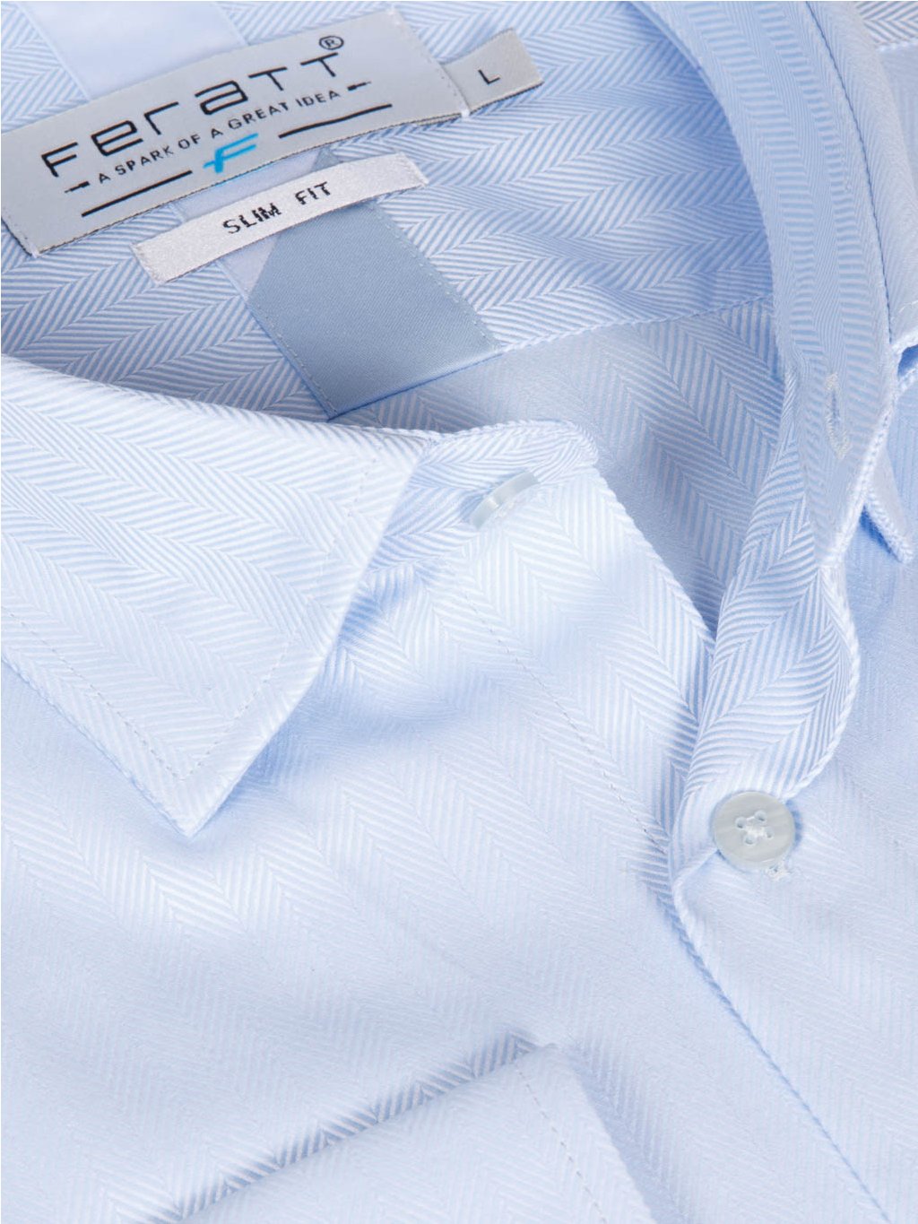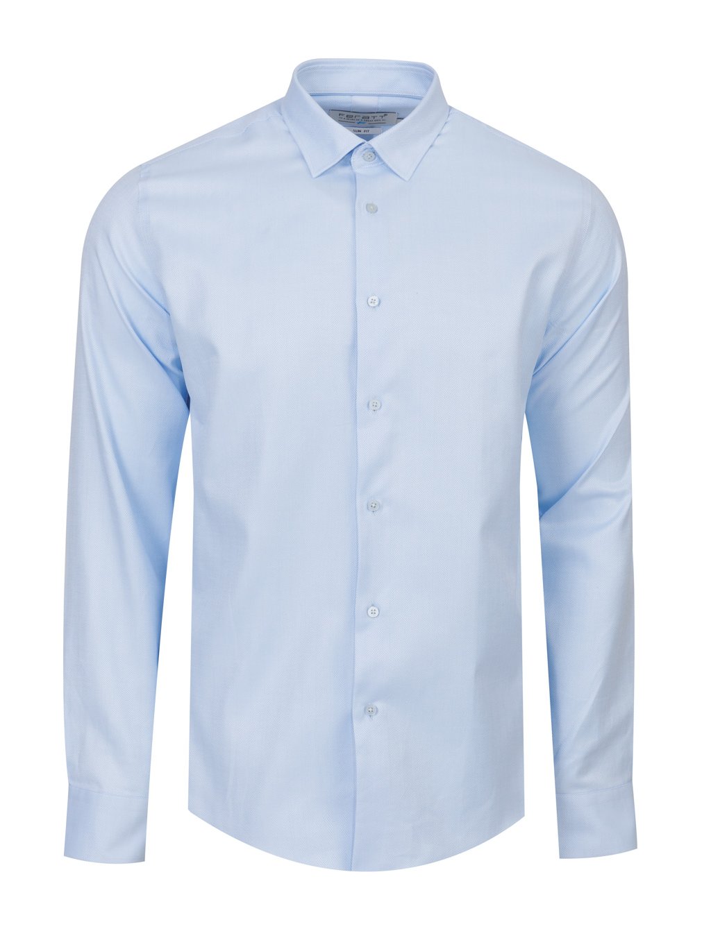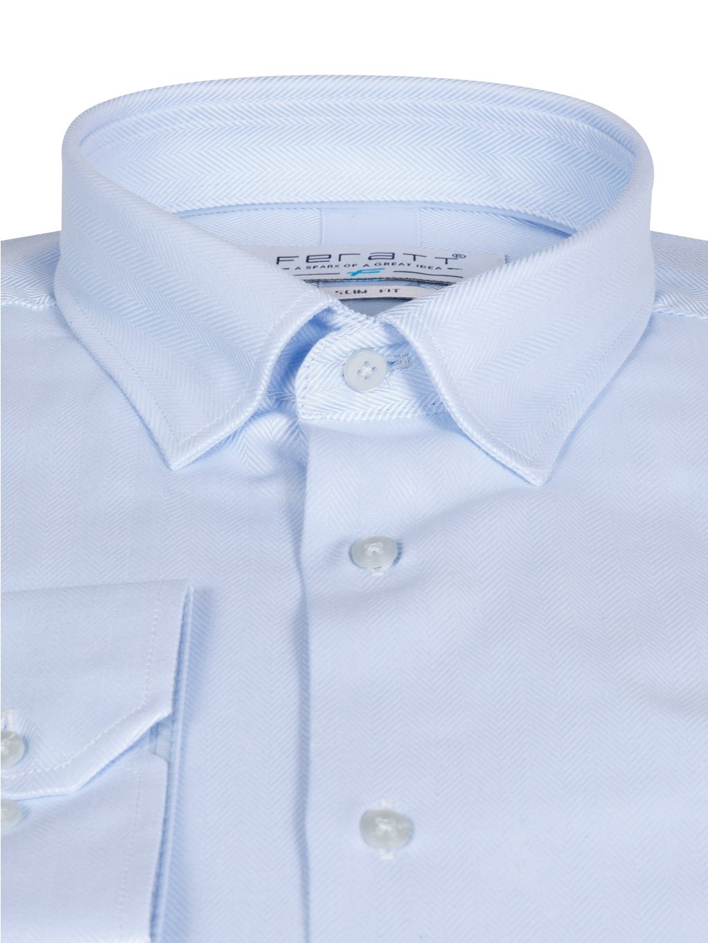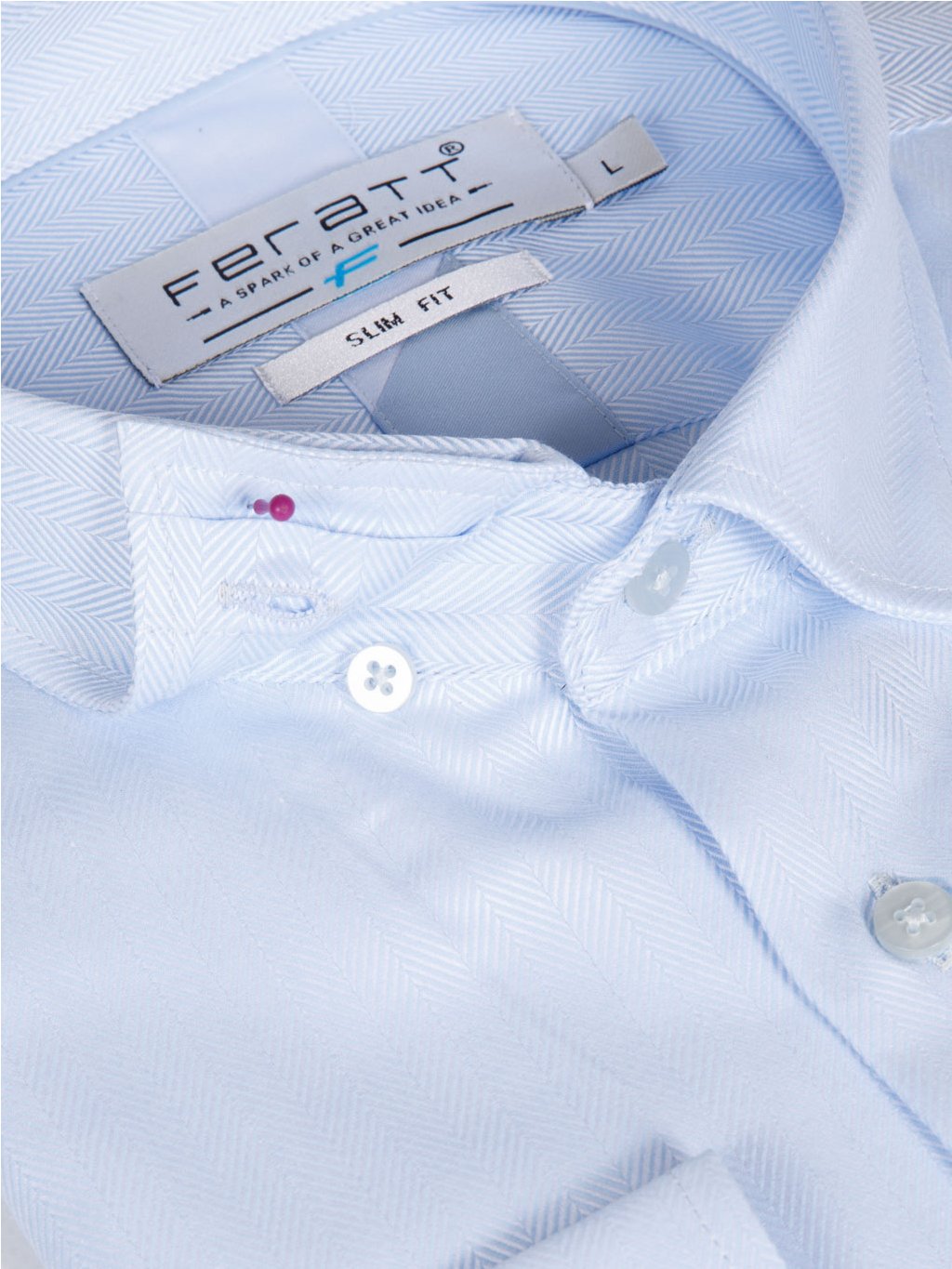 Luxusní košile DORLAN ve světle modré barvě. Ušitá ze 100% bavlny. Modrá košile se vzorem rybí kosti ve střihu SLIM fit.