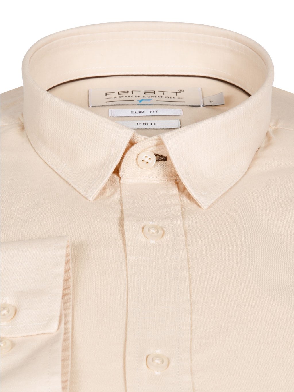 Pánská formální smetanová košile EVAN, která vyniká jednoduchým designem. Střih slim fit.