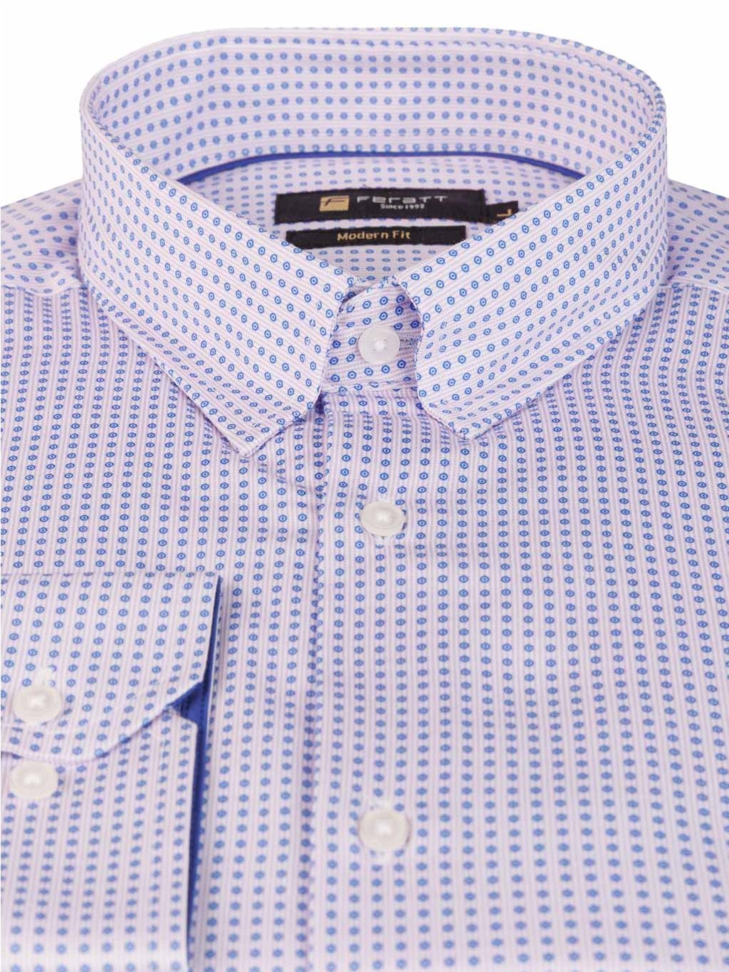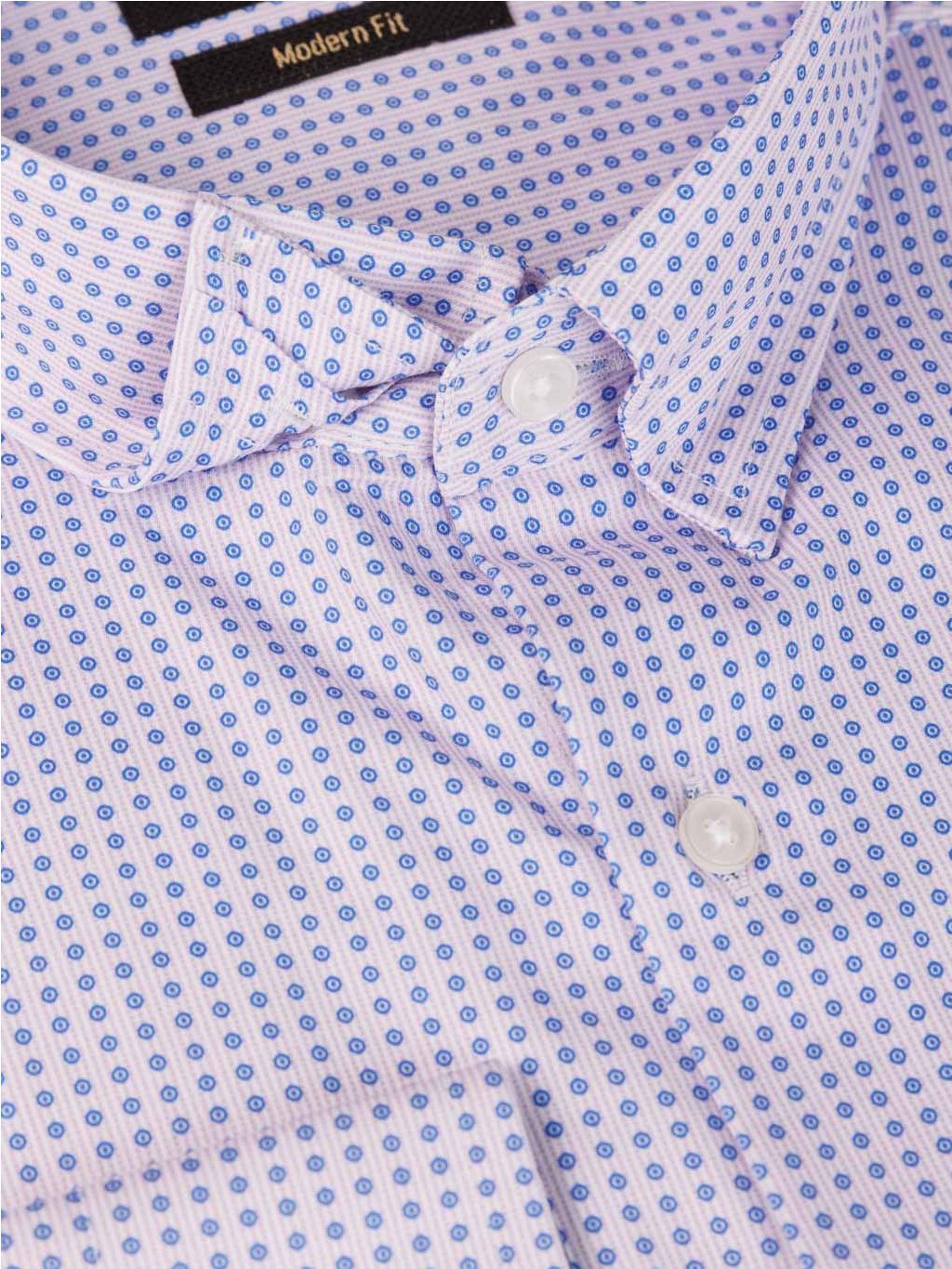 Pánská košile FABIO ve světlé fialové barvě se vzorem. Košile je prodyšná, poddajná a pružná. Střih košile modern fit.