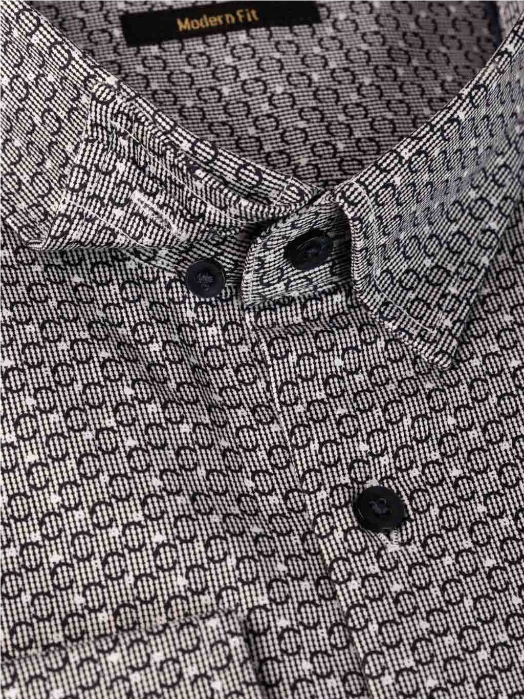 Pánská košile FABIO v šedé barvě se vzorem. Košile je prodyšná, poddajná a pružná. Střih košile modern fit.