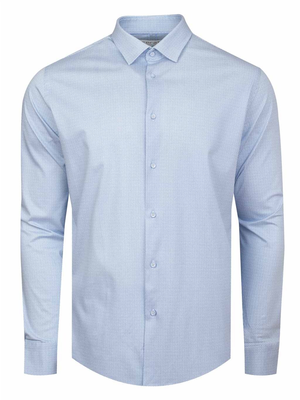 Luxusní bavlněná košile z nové kolekce. Pružná pánská košile ve světle modré barvě s jemným vzorem. Ušita ze 100% prémiové bavlny ve střihu Slim fit.