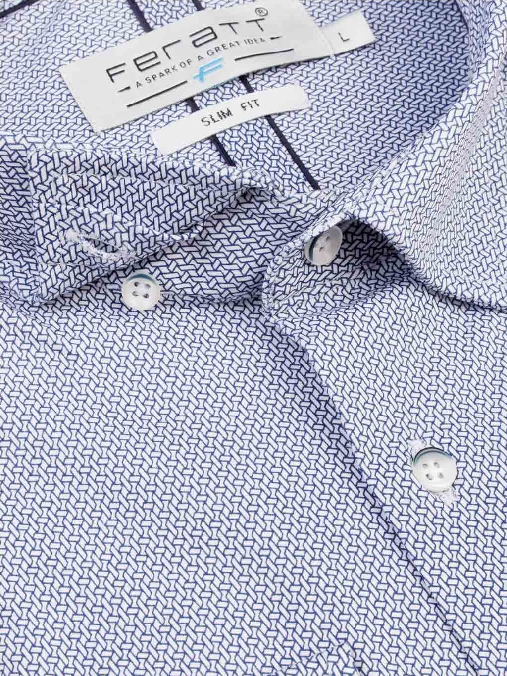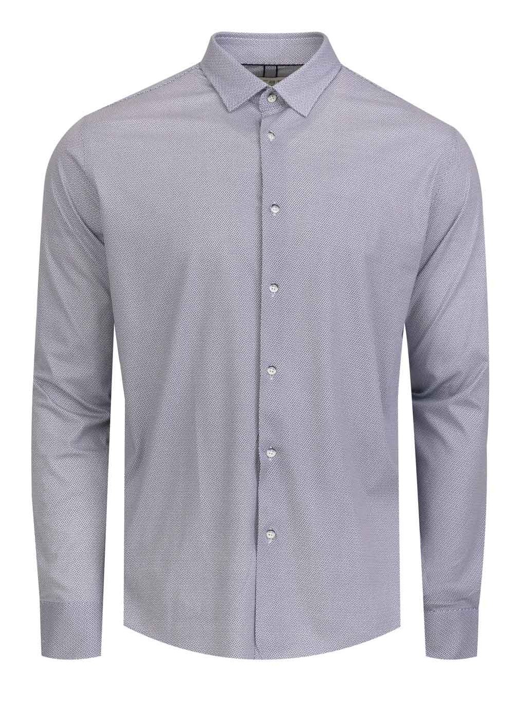 Luxusní bavlněná košile v tmavě modré barvě s moderním 3D vzorem. Ušita z pružné 100% prémiové bavlny ve střihu Slim fit.