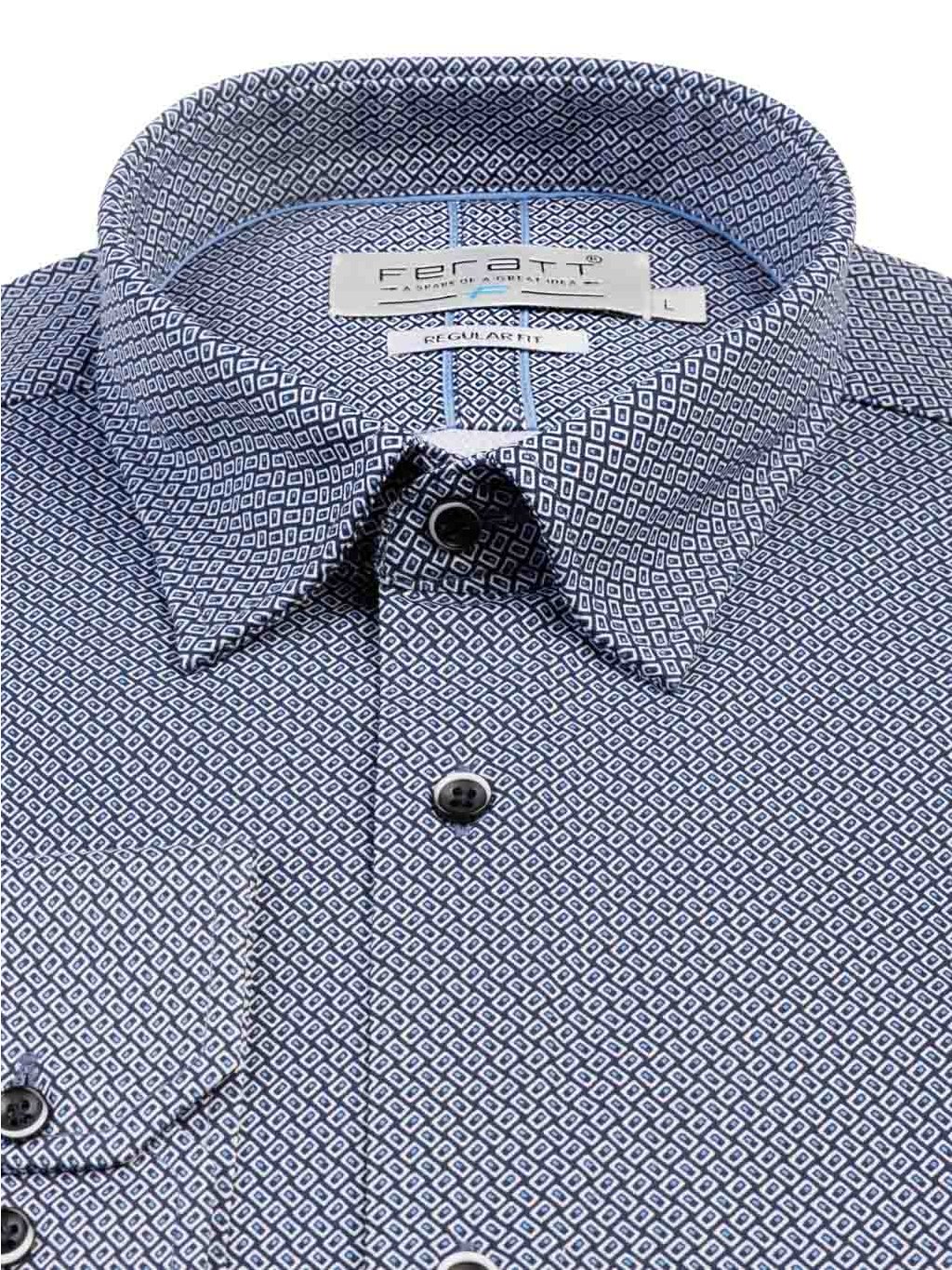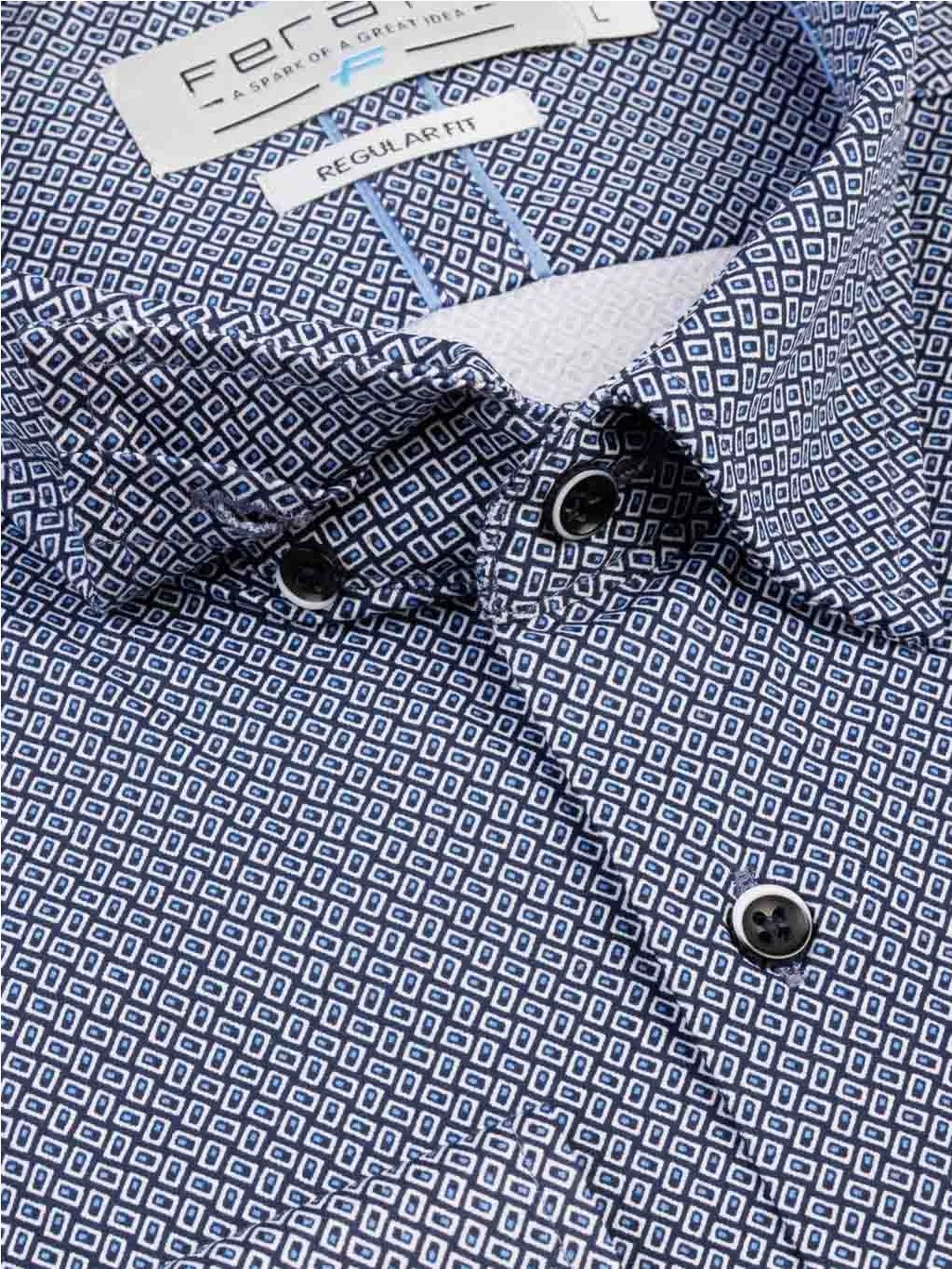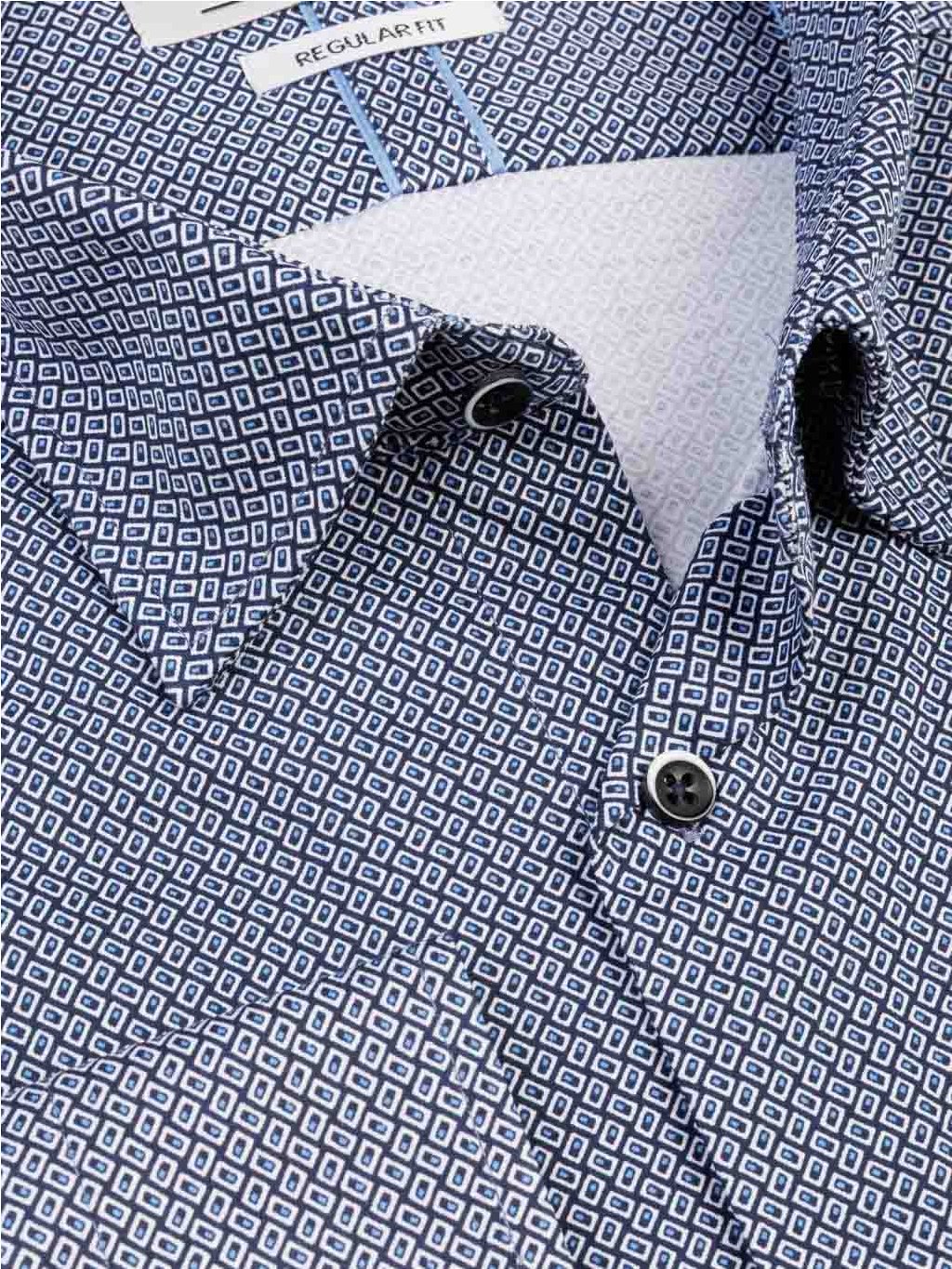Luxusní bavlněná košile v tmavě modré barvě s velice módním vzorem. Ušita z pružné 100% prémiové bavlny ve střihu Regular fit.