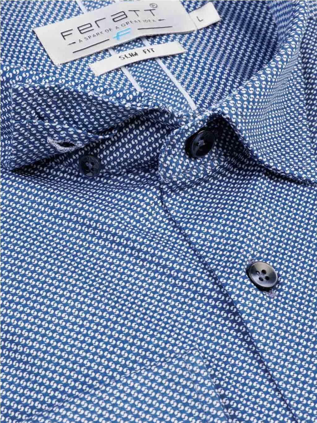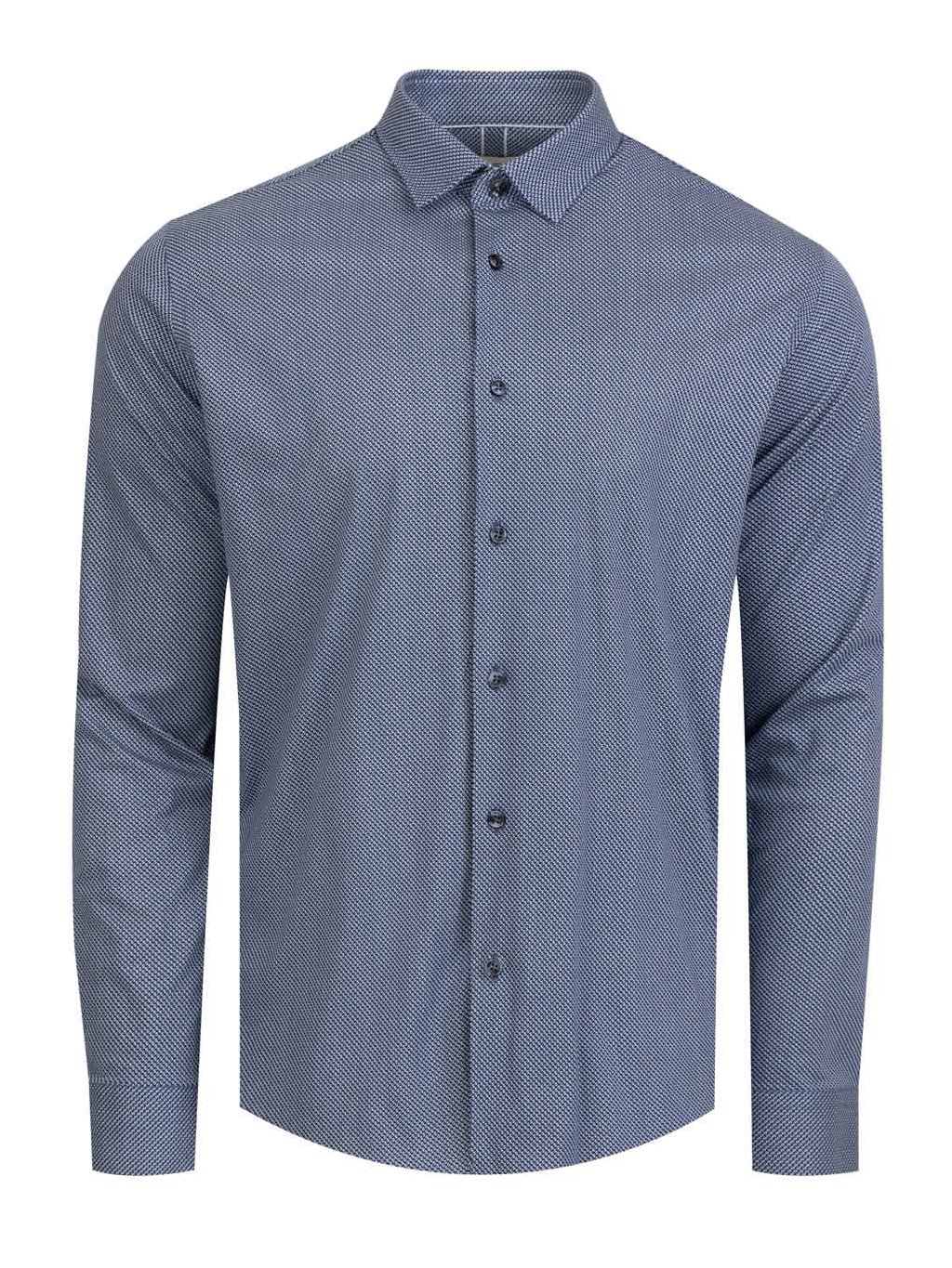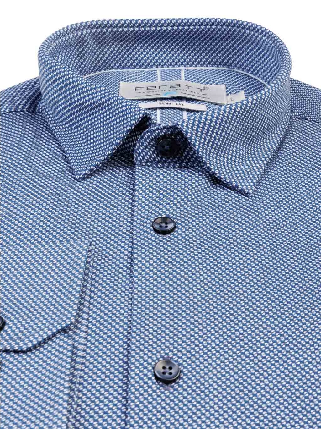 Luxusní bavlněná košile z nové kolekce. Pružná pánská košile ve světle modré barvě s jemným vzorem. Ušita ze 100% prémiové bavlny ve střihu Slim fit.