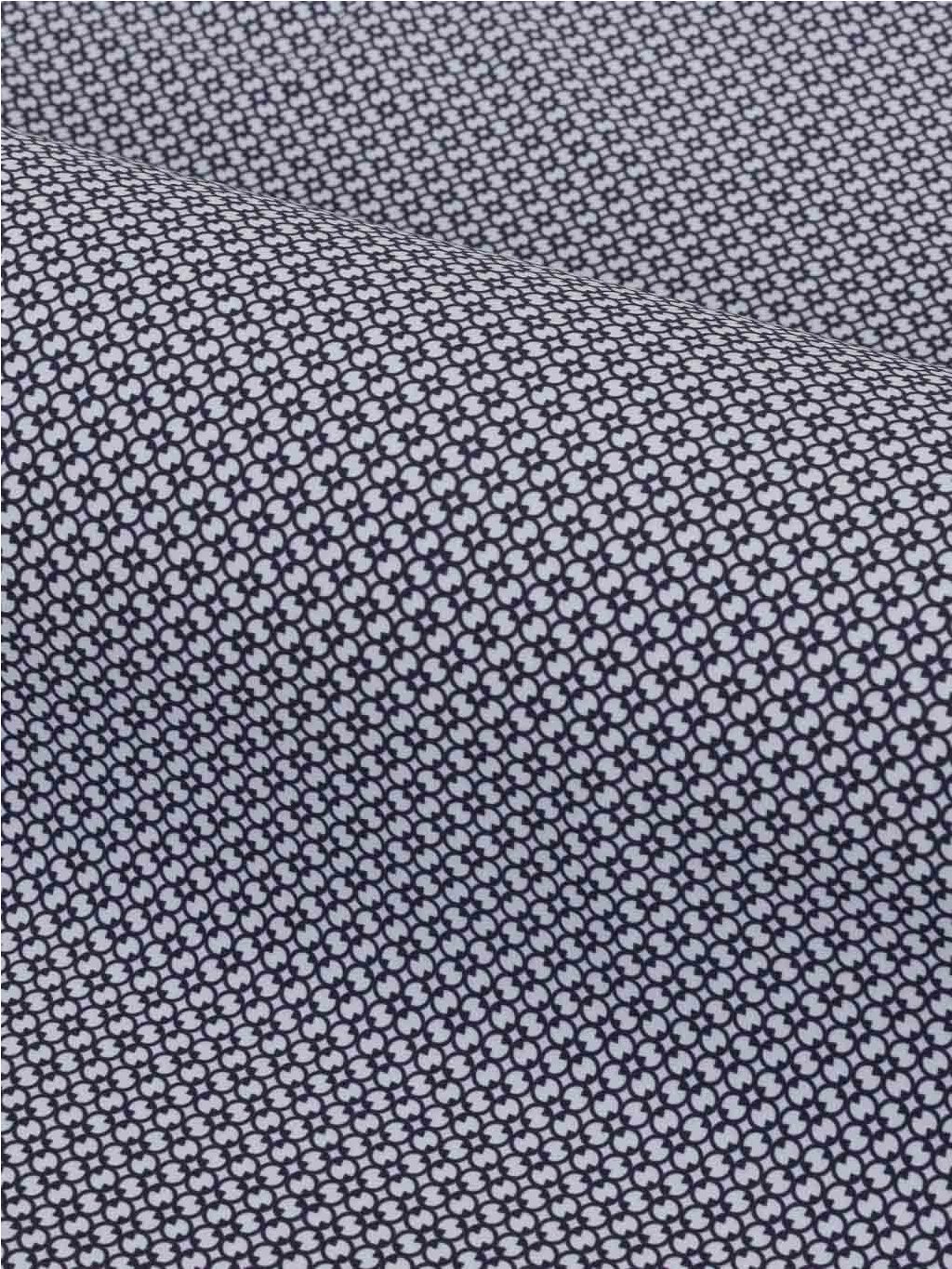 - Vzor: Bílá košile s tmavě šedým vzorem, který dodává košili na zajímavosti. Celkově košile působí spíše tmavě modrým dojmem. Košili tak snadno sladíte s ostatními částmi vašeho outfitu, jako jsou jednobarevné džíny či kalhoty, sako, boty nebo opasek.