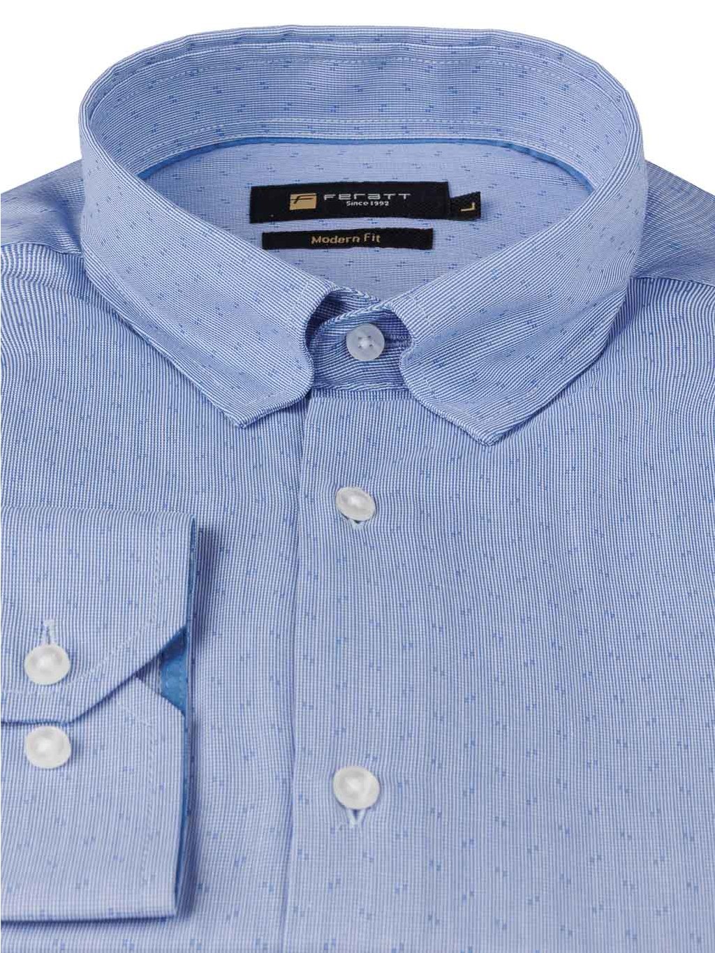 Pánská košile DORIAN v modré barvě s jemným vzorem. Ušita ze 100% bavlny. Střih Modern fit.
