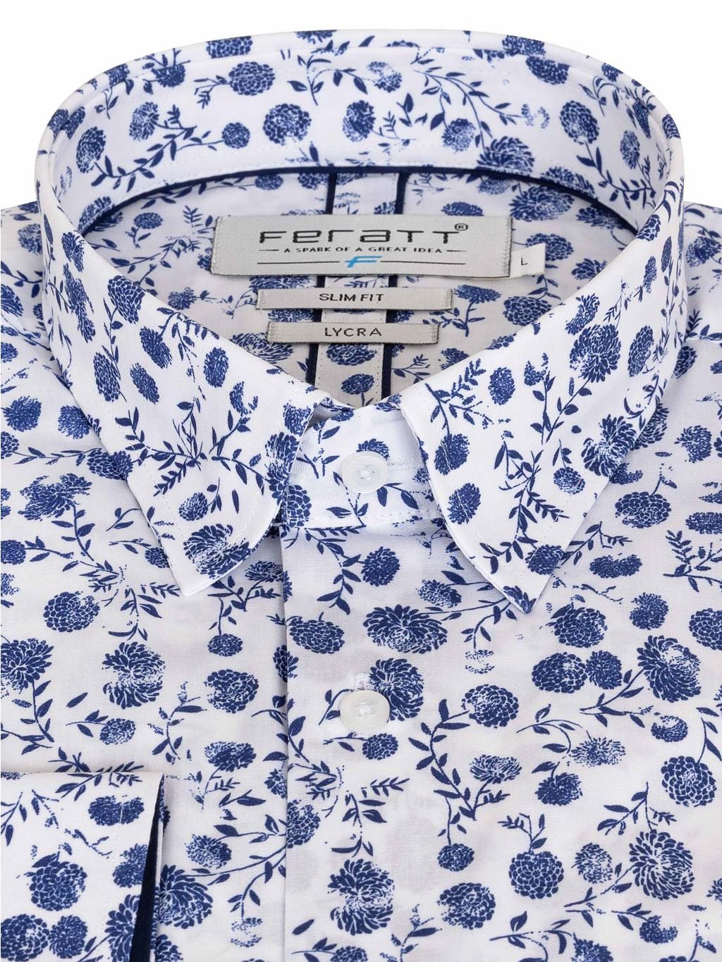Pánská košile FIORE je ušita v bílé barvě se zajímavým florálním modrým vzorem. Košili můžete nosit celoročně. Stačí zvolit vhodné kalhoty, které podtrhnou vzhled celého outfitu. V této košili rozhodně zaujmete a budete zkrátka nepřehlédnutelní.
