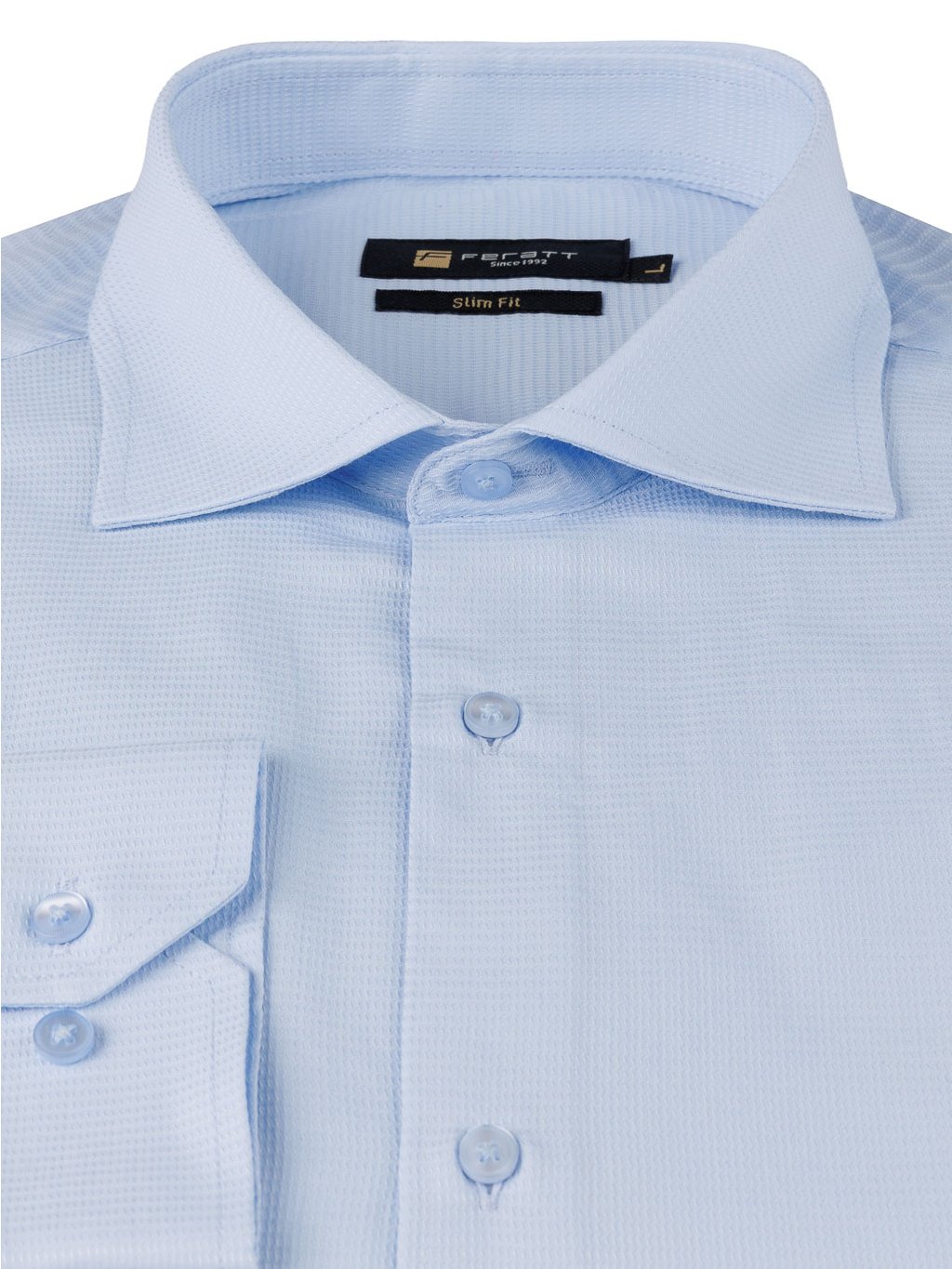 Elegantní pánská košile LISABON ve světle modré barvě s jemnou strukturou. Ideální volba pro všechny formální příležitosti. Perfektně doplní váš outfit na návštěvu divadla, oslavu narozenin nebo pracovní jednání.