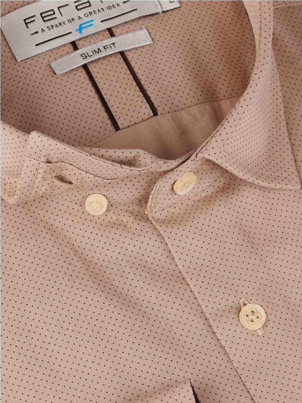 Kvalitní a pohodlná bavlněná košile ODIN v béžové barvě. Ušitá ze 100% bavlny. Střih slim fit.