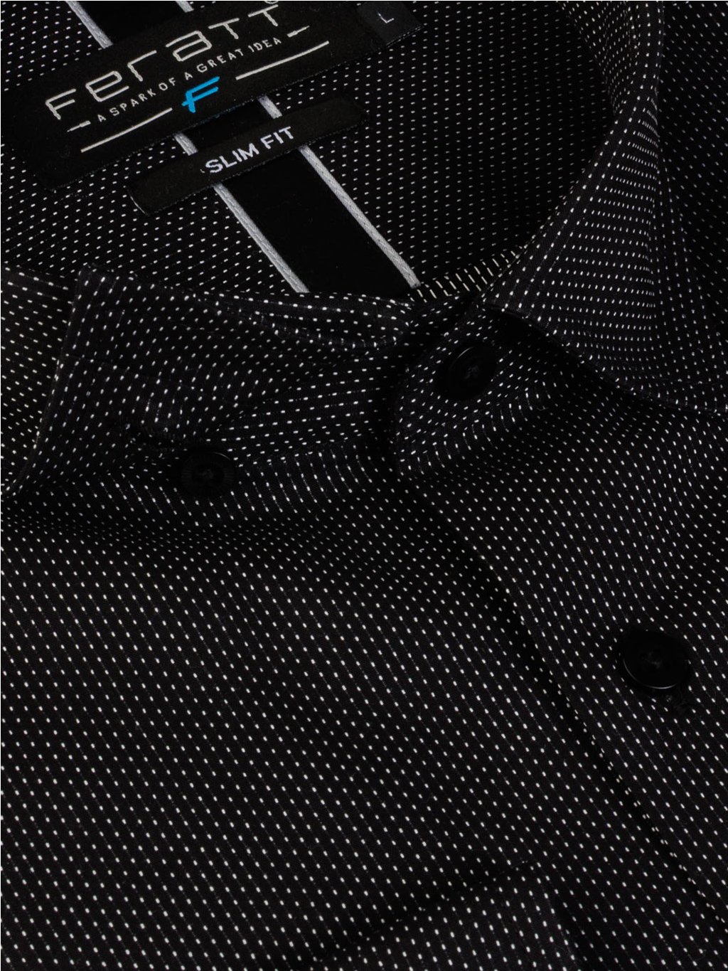Pánská košile SABRIN v černé barvě s drobným vzorem. Střih slim fit.