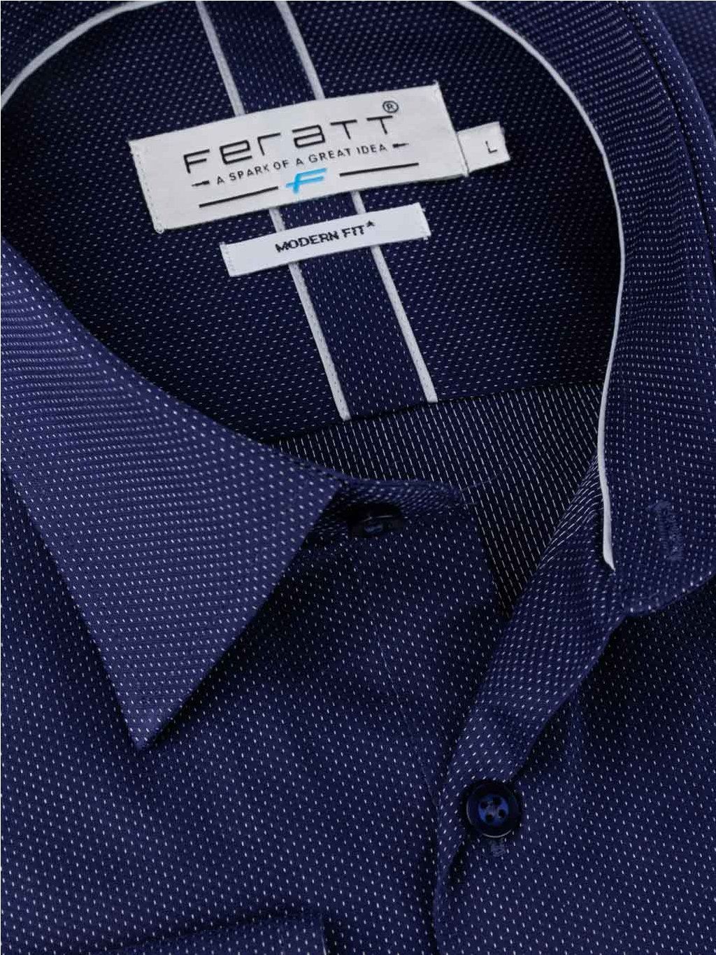 • Tmavě modrá košile s jemným bílým vzorem.