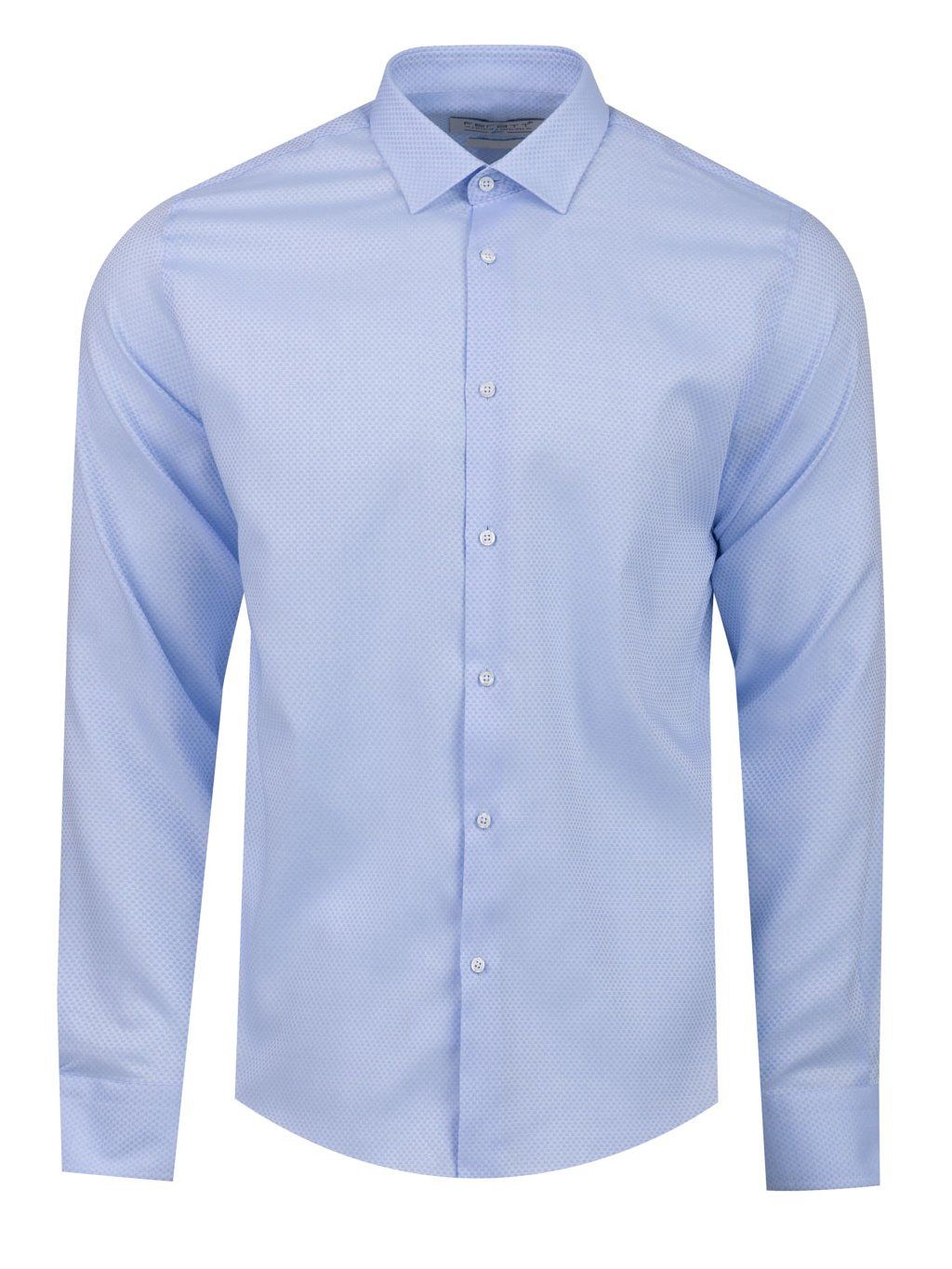 - Světle modrá košile s jemným vzorem.
