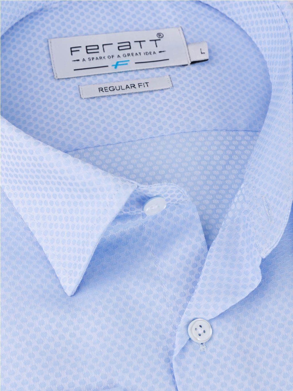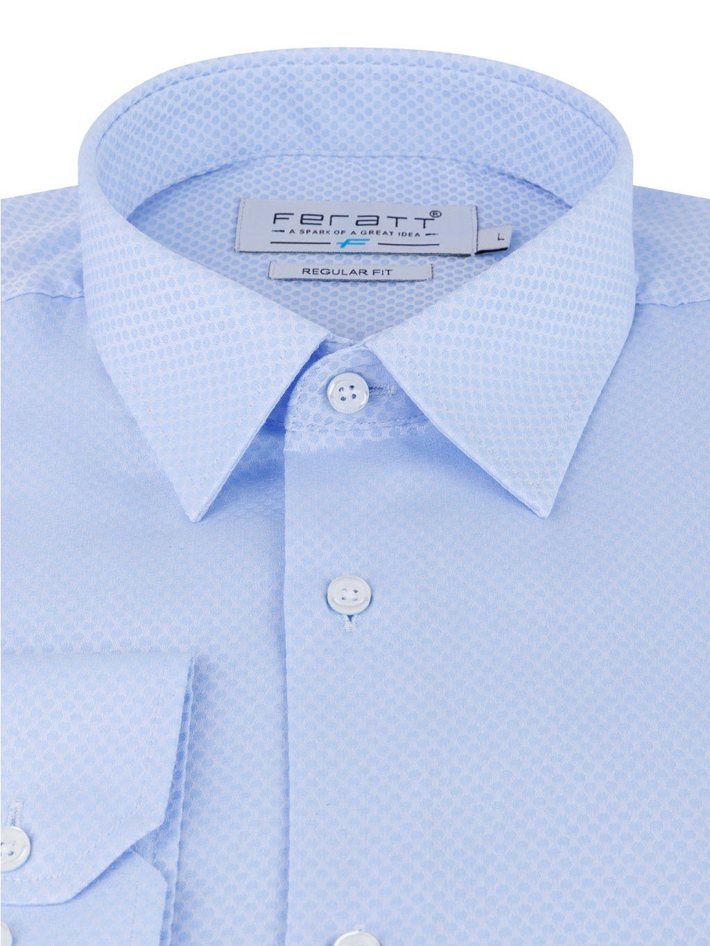 Pánská košile STUART ve světle modré barvě s jemným vzorem. Ušita ze 100% bavlny ve střihu regular fit.