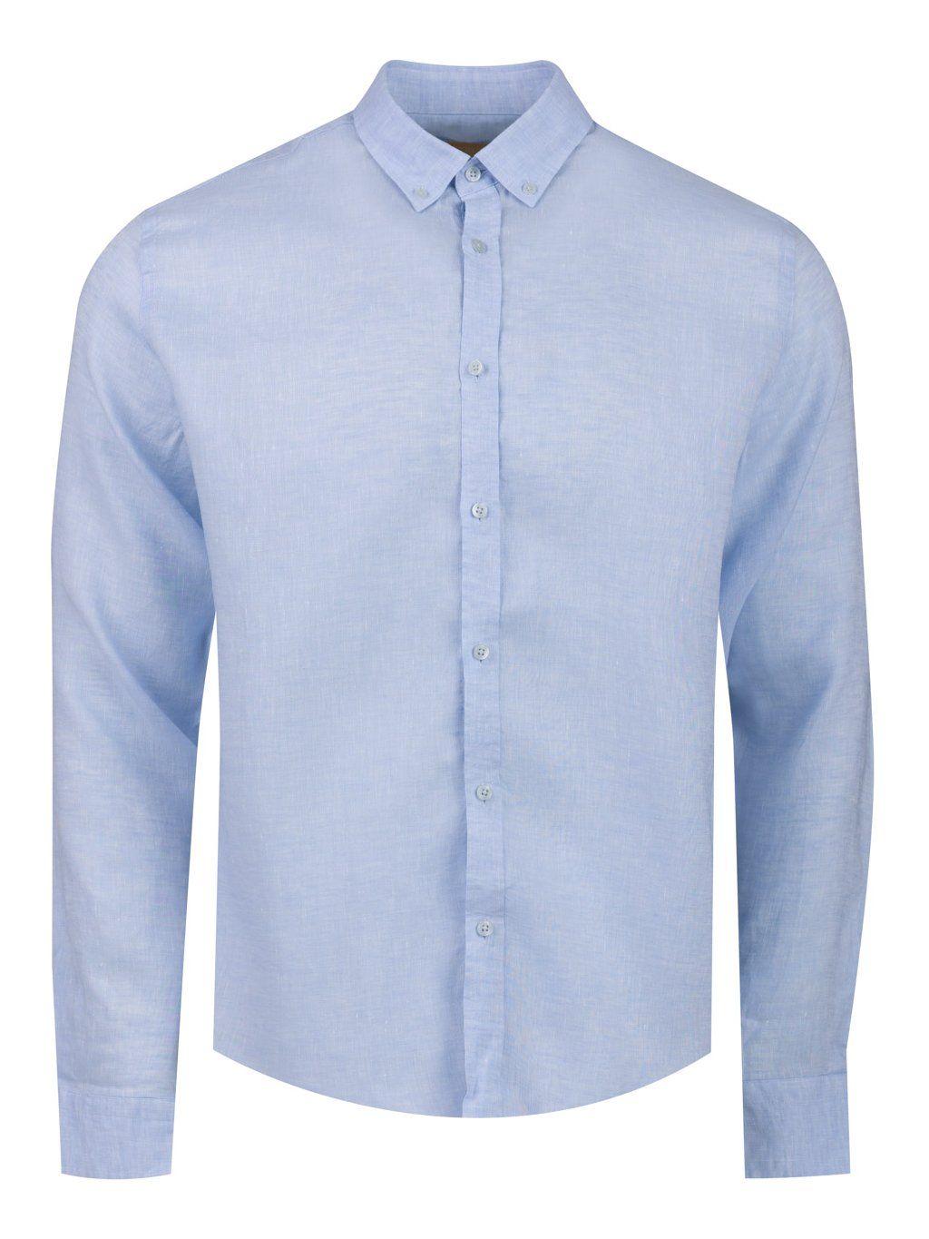 Pánská lněná košile v modré barvě vyrobená ze 100 % lnu. Chladivý materiál košile oceníte především v létě. Střih slim fit.