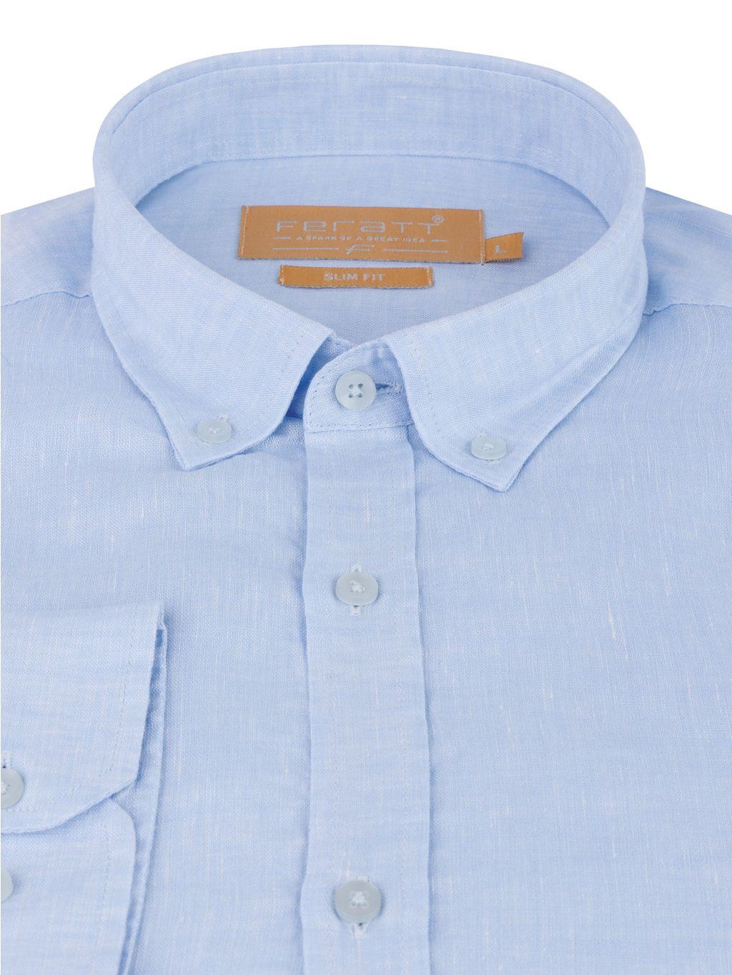 Pánská casual košile v trendy modré barvě, vyrobená ze 100% lnu. Tento chladivý materiál je ideální pro letní období, kdy oceníte příjemný pocit svěžesti a prodyšnosti.