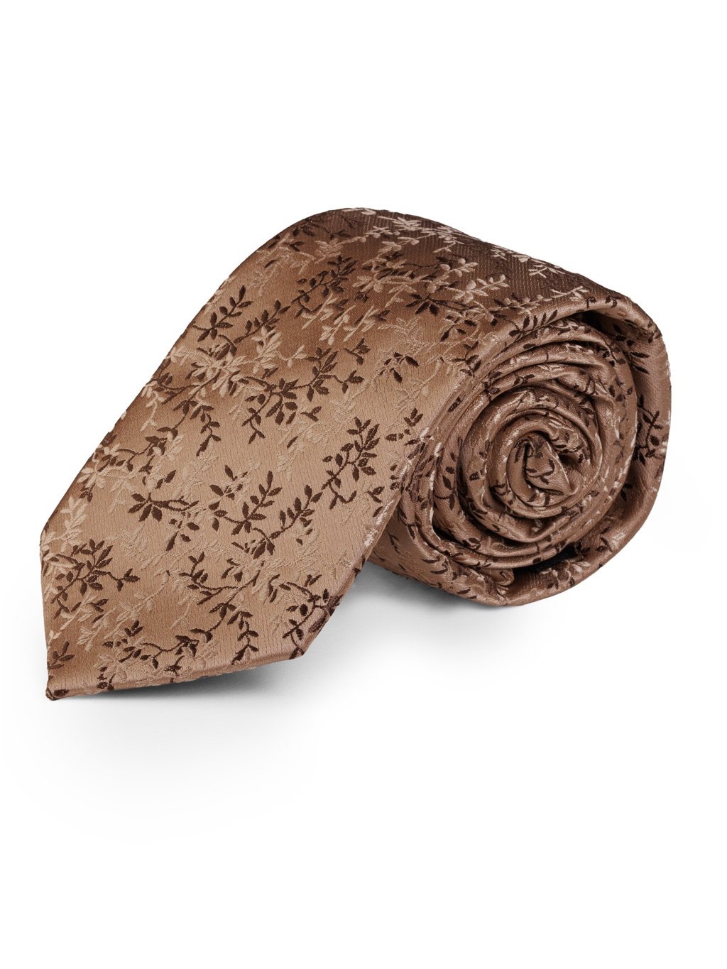 Pánská hnědá kravata FERATT se vzorem. Kravata je vhodným kouskem do práce, do tanečních, na svatbu nebo společenskou událost.