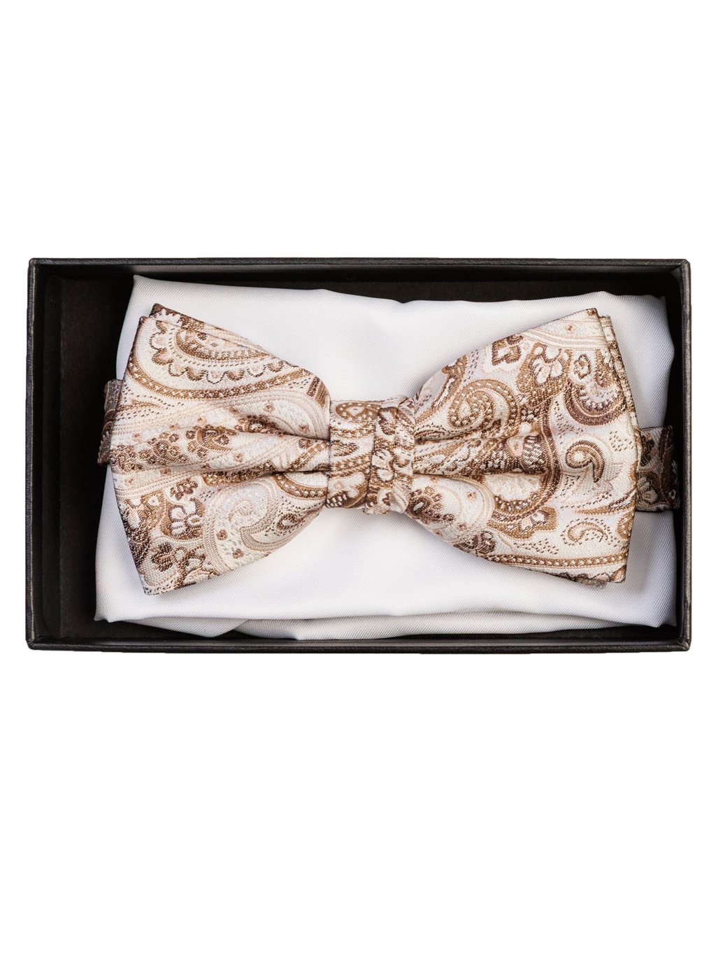 Pánský předvázaný motýlek FERATT ve světle hnědé barvě. Součástí setu je bílý kapesníček. Nastavitelná velikost kolem krku.