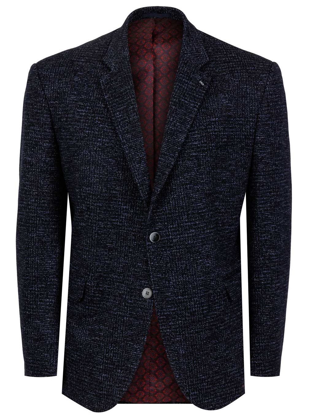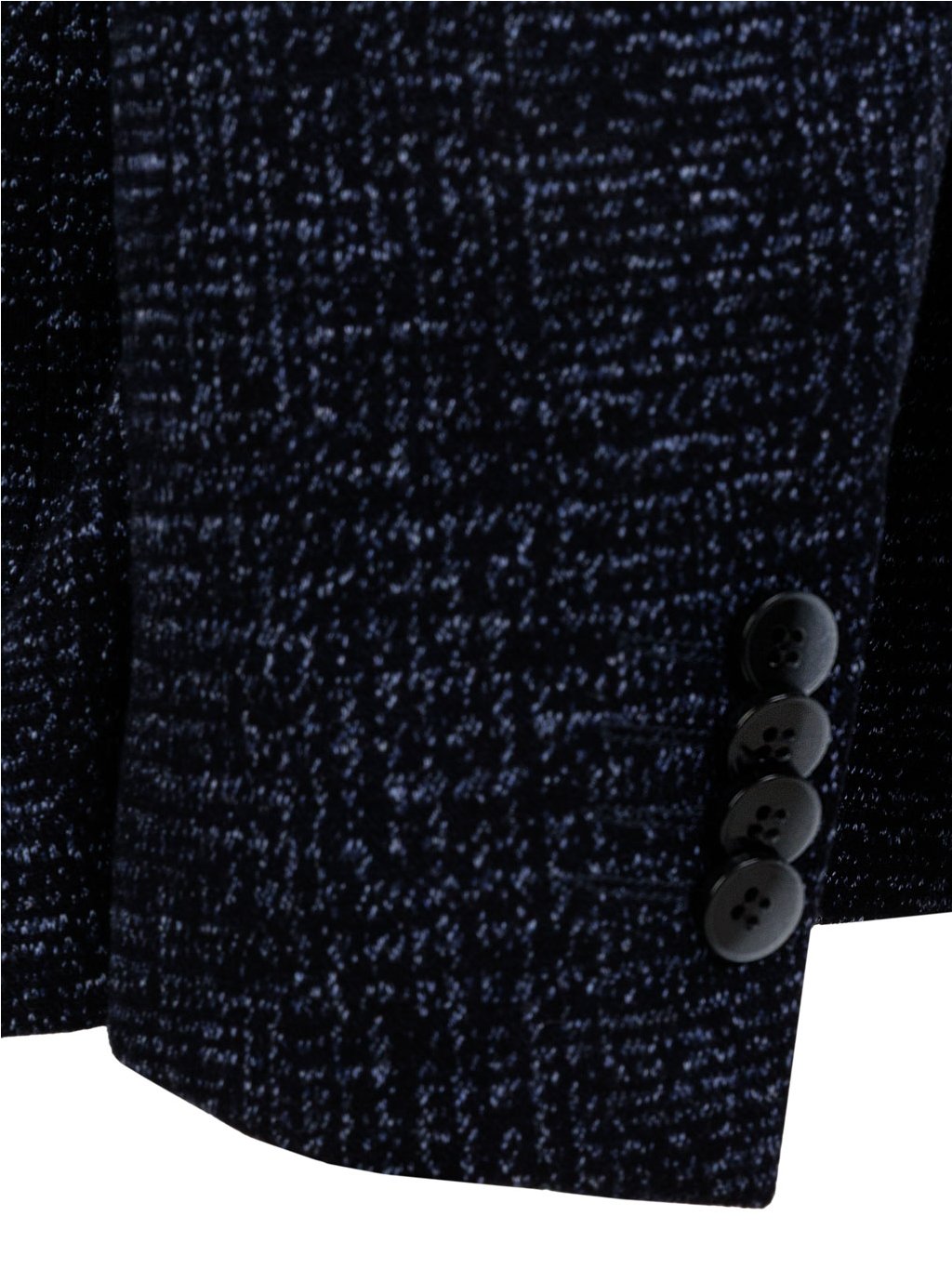 Pánské sako ALAIN II. je ušito v tmavě modré barvě z pleteného materiálu. Propracováno do detailů.