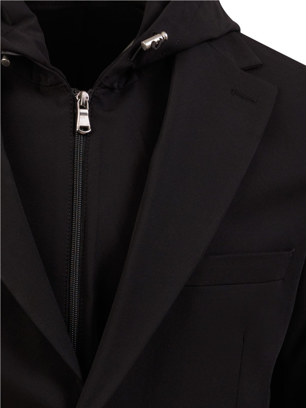 - Po odejmutí podsádky s kapucí získáte sako s klopou v klasickém střihu.