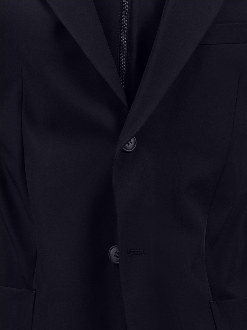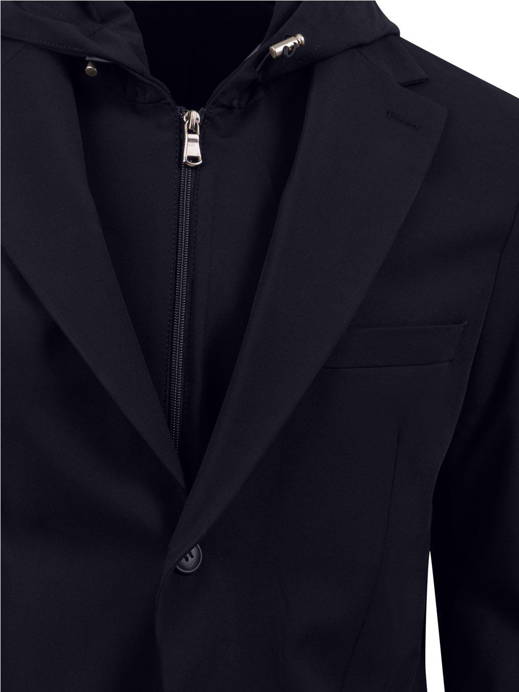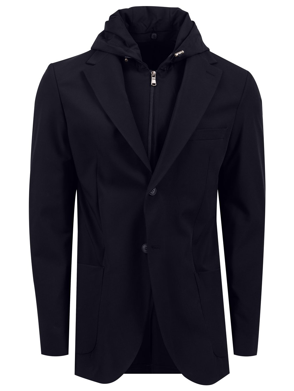 - Po odejmutí podsádky s kapucí získáte sako s klopou v klasickém střihu.