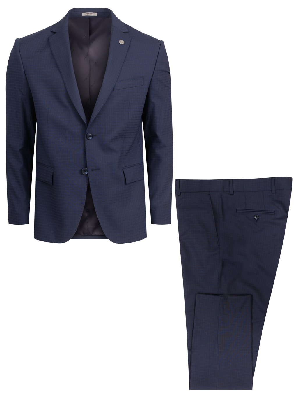 Pánský oblek NOX s obsahem vlny v tmavě modré barvě se vzorem a ve střihu Slim fit. Složení sako a kalhoty.
