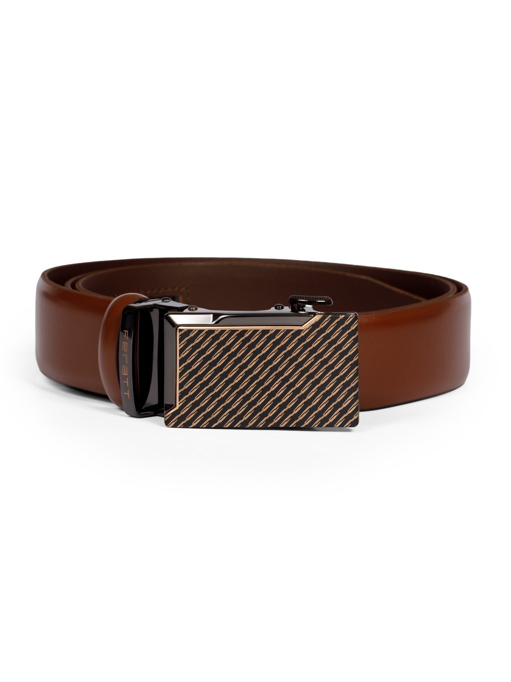 Pánský hnědý opasek z přírodní kůže s automatickou přezkou - neodmyslitelný doplněk každého pánského outfitu.