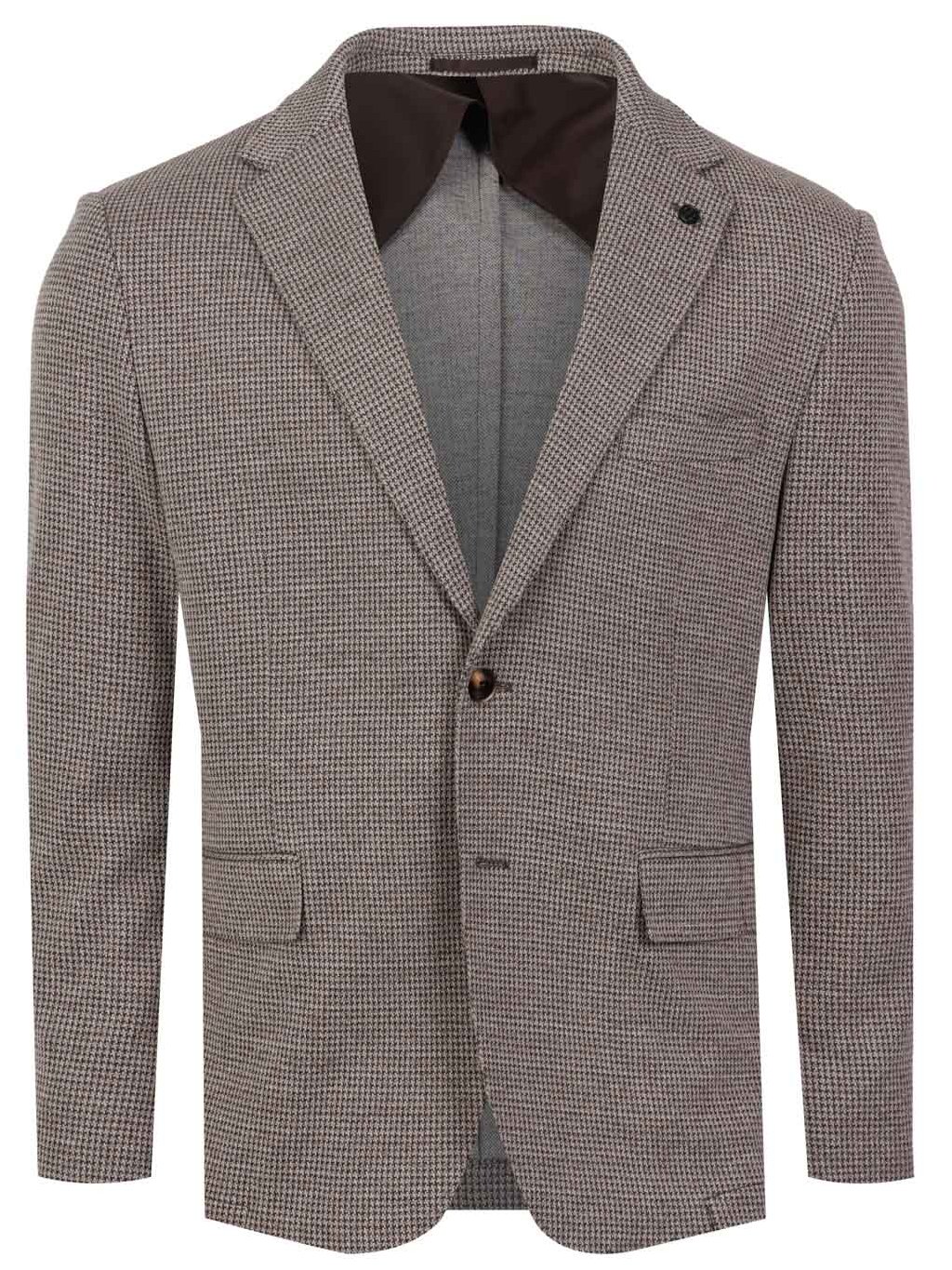 • Stylové pánské sako ve světle hnědé barvě s jemným vzorem.