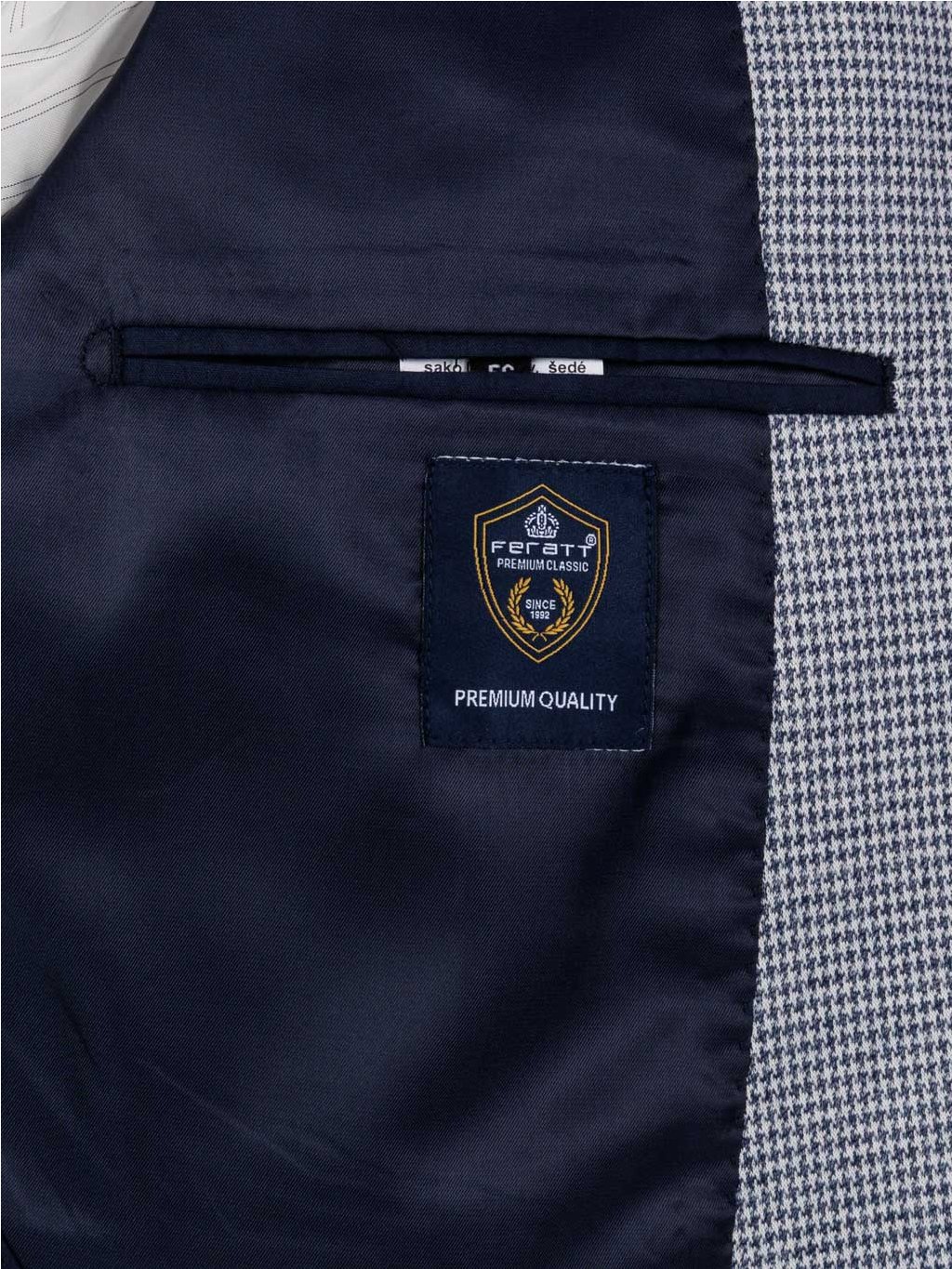 • Stylové pánské sako v šedé barvě s jemným vzorem.