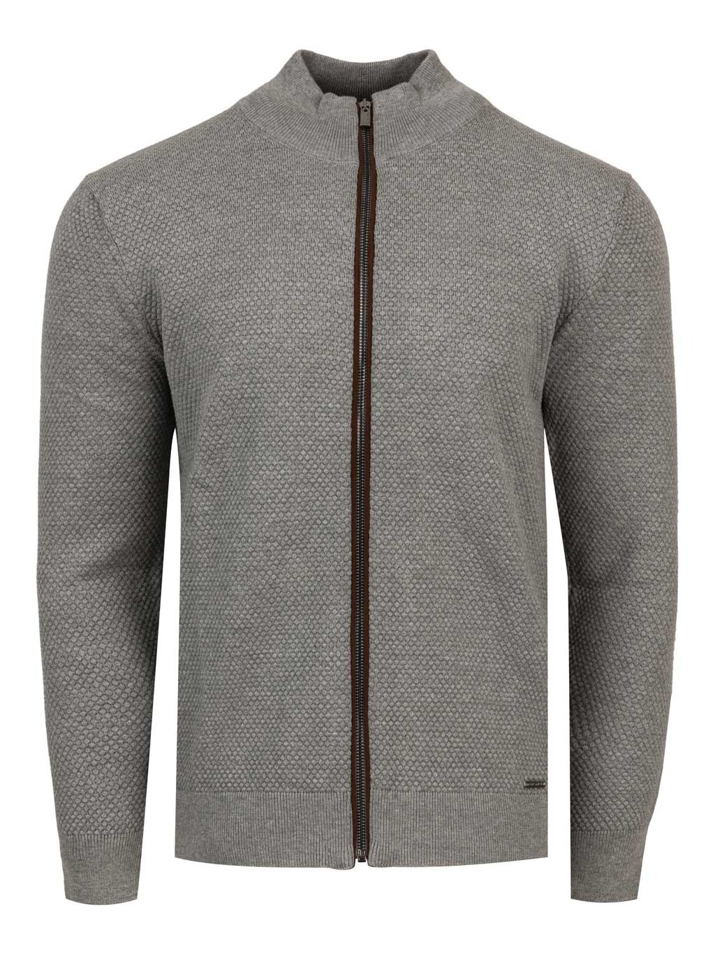 Pánský svetr na zip QUINN v šedé barvě s pleteninovým vzorem. Elegantní svetr do práce i pro volný čas.
